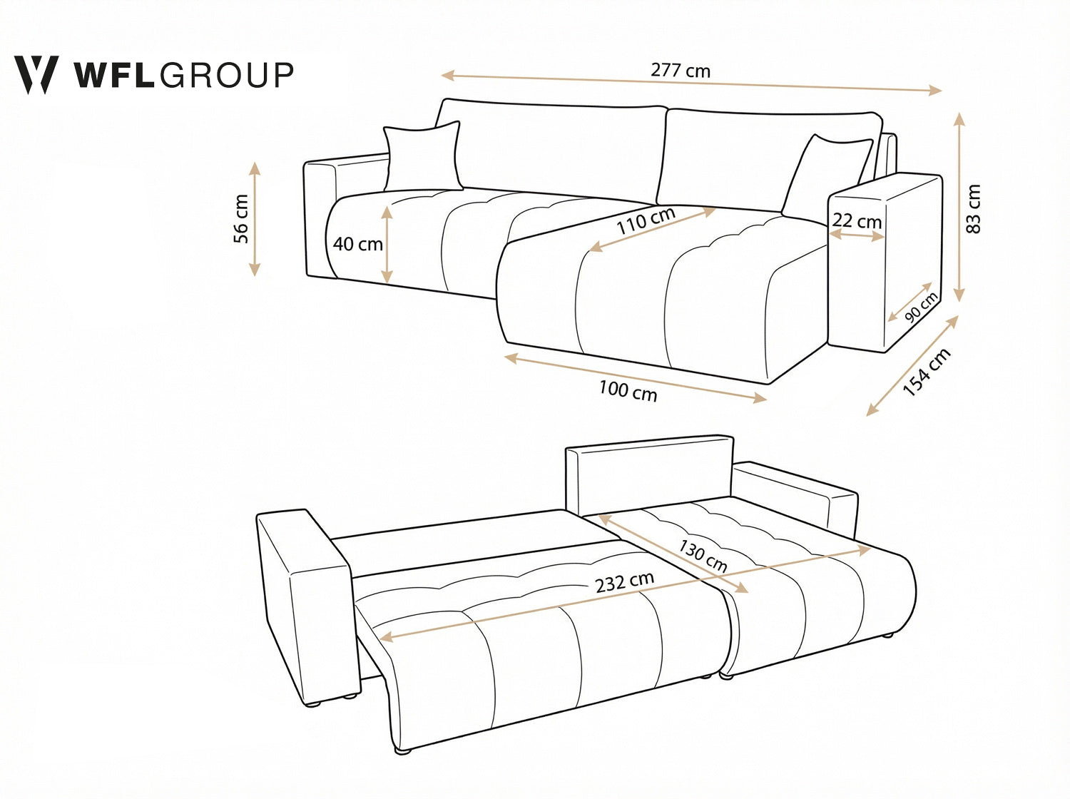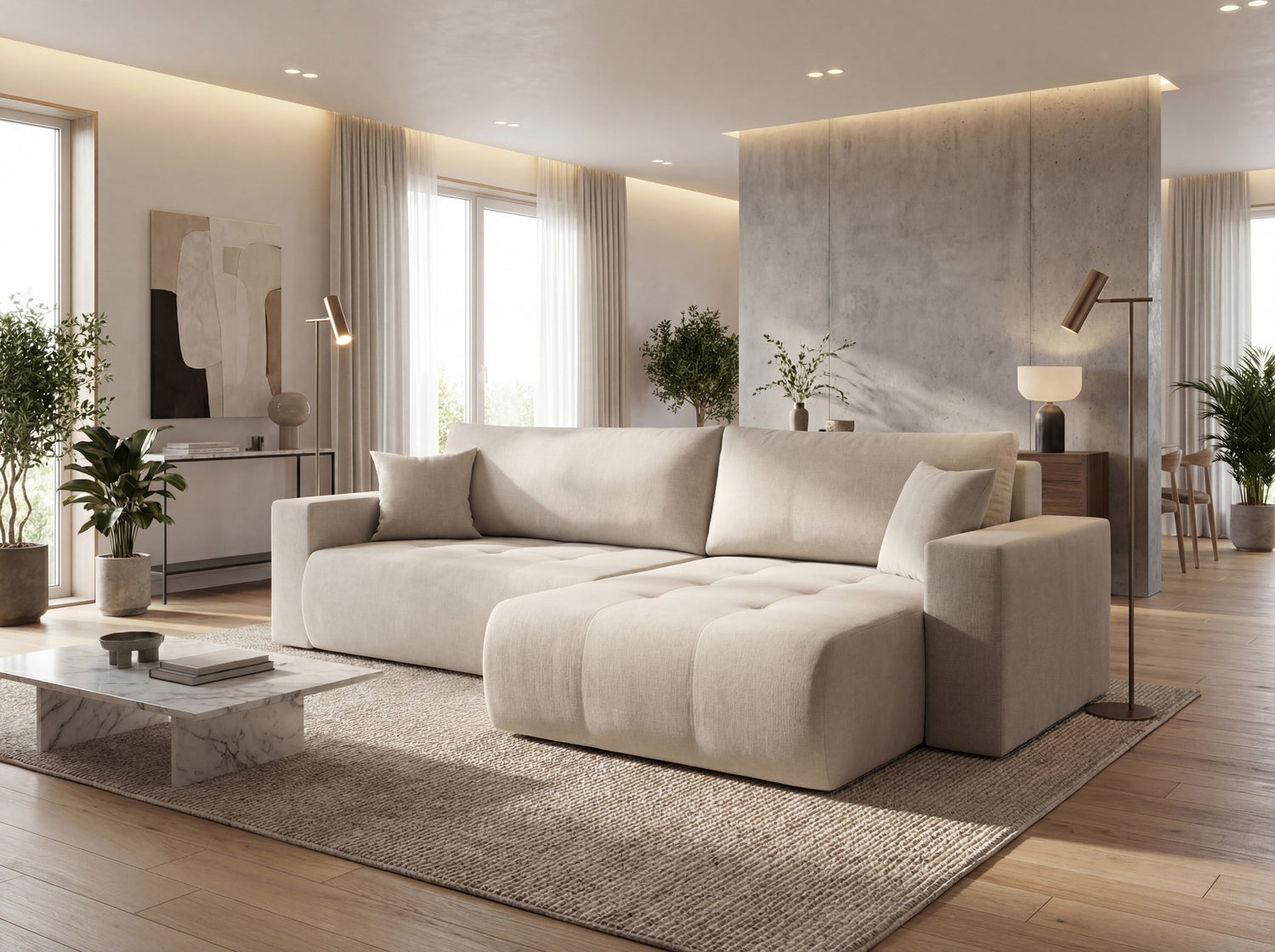 Narożnik Alva - Beż Strukturalny / 3-Osobowa jest na stanie i zostanie wysłany, gdy tylko będzie dostępny
