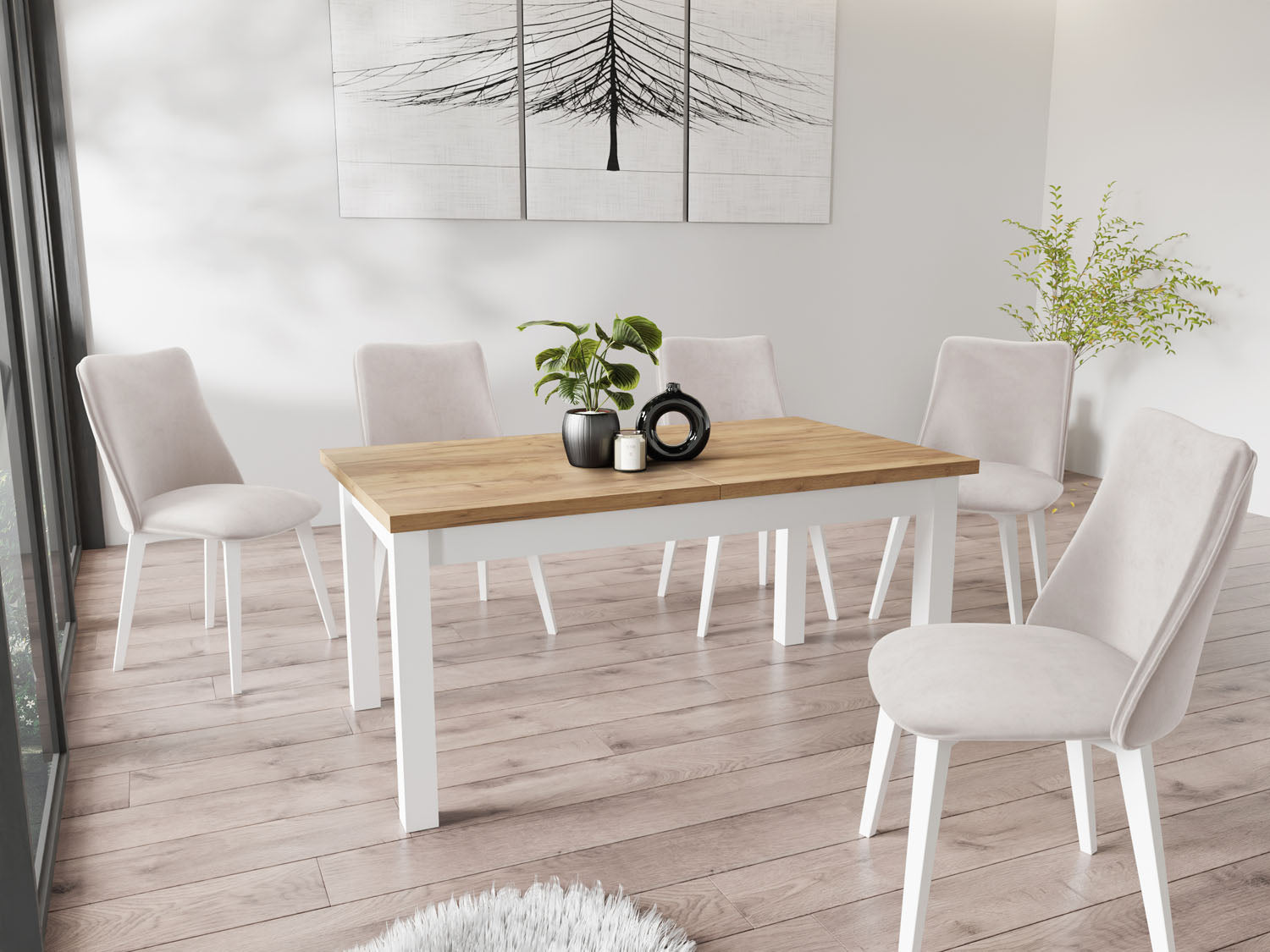 PRAKTYCZNY – Je nach gewählter Größe, der Tisch ist rozkładany od 160 cm do 240 cm. Dies macht ihn perfekt für przyjęcia oder rodzinne spotkania. Die Płyty przedłużające können pod blat untergebracht werden.
