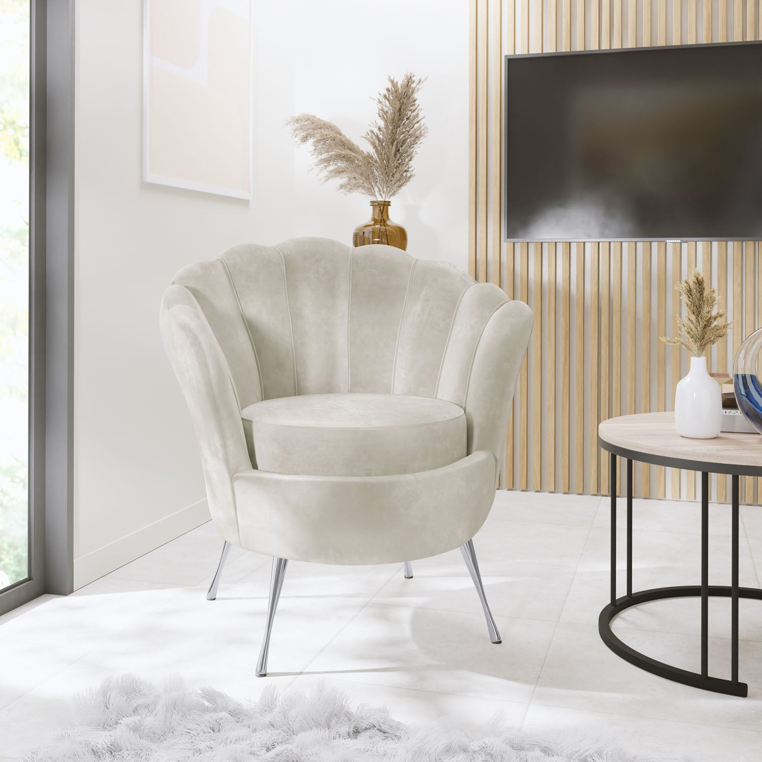 Fotel Cara - Velluto 2 (Beżowy) / Srebrne nogi jest na stanie i zostanie wysłany, gdy tylko będzie dostępny