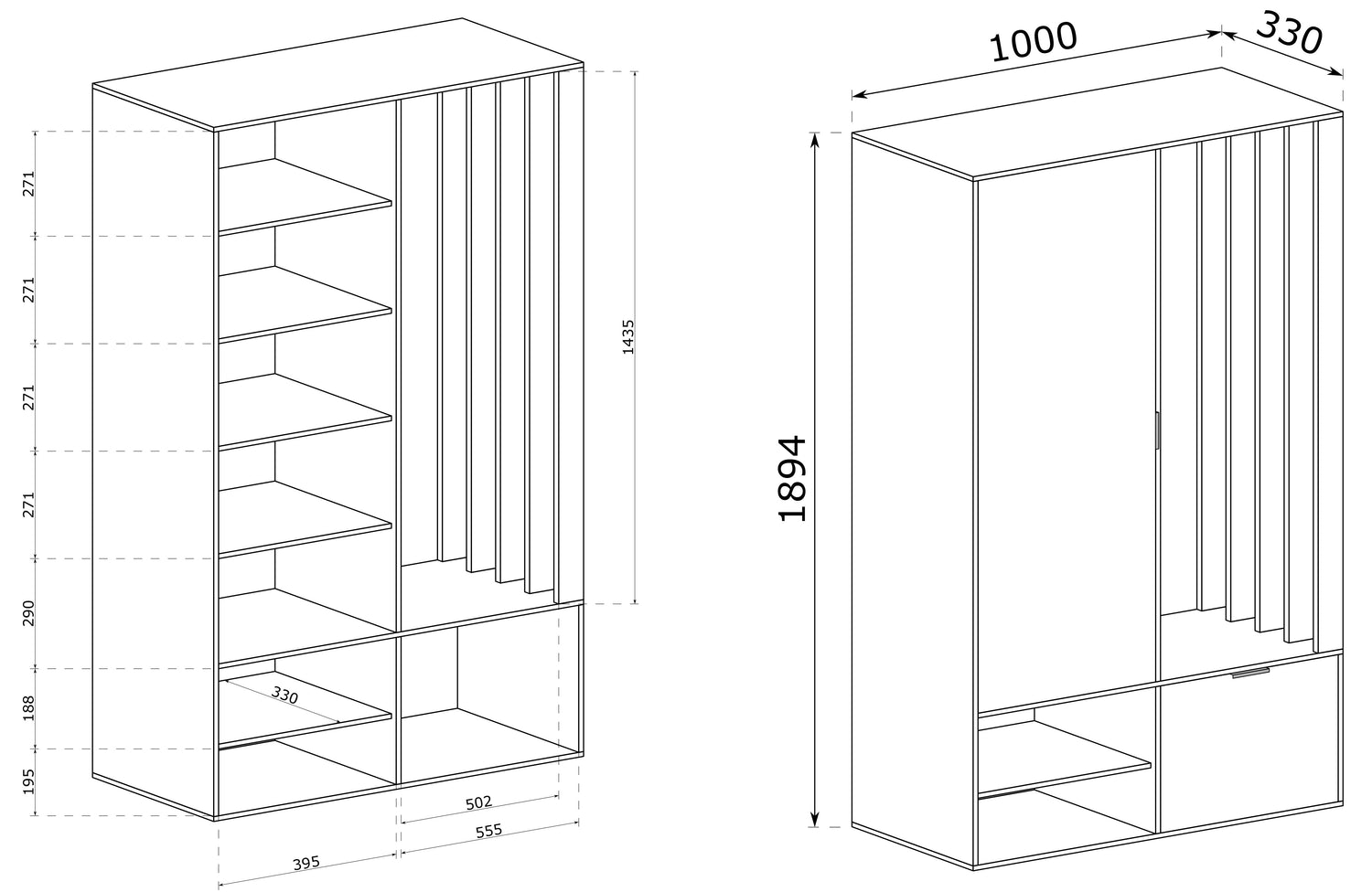 100 × 189 × 33 cm (szer. / wys. / gł.)