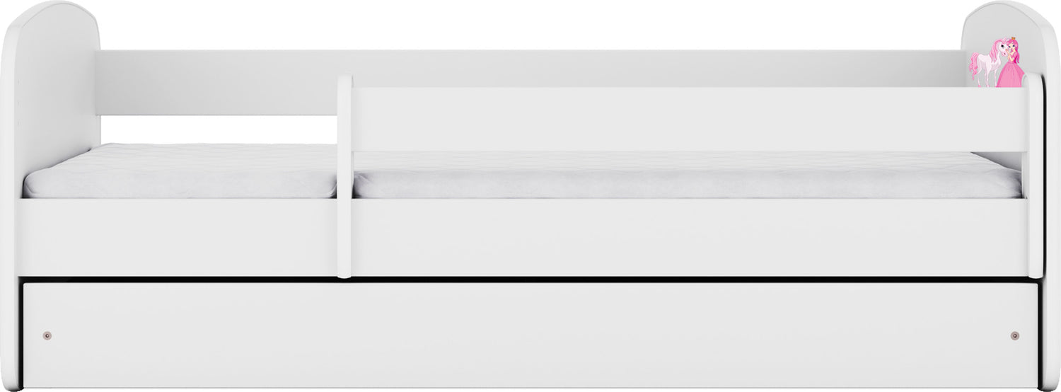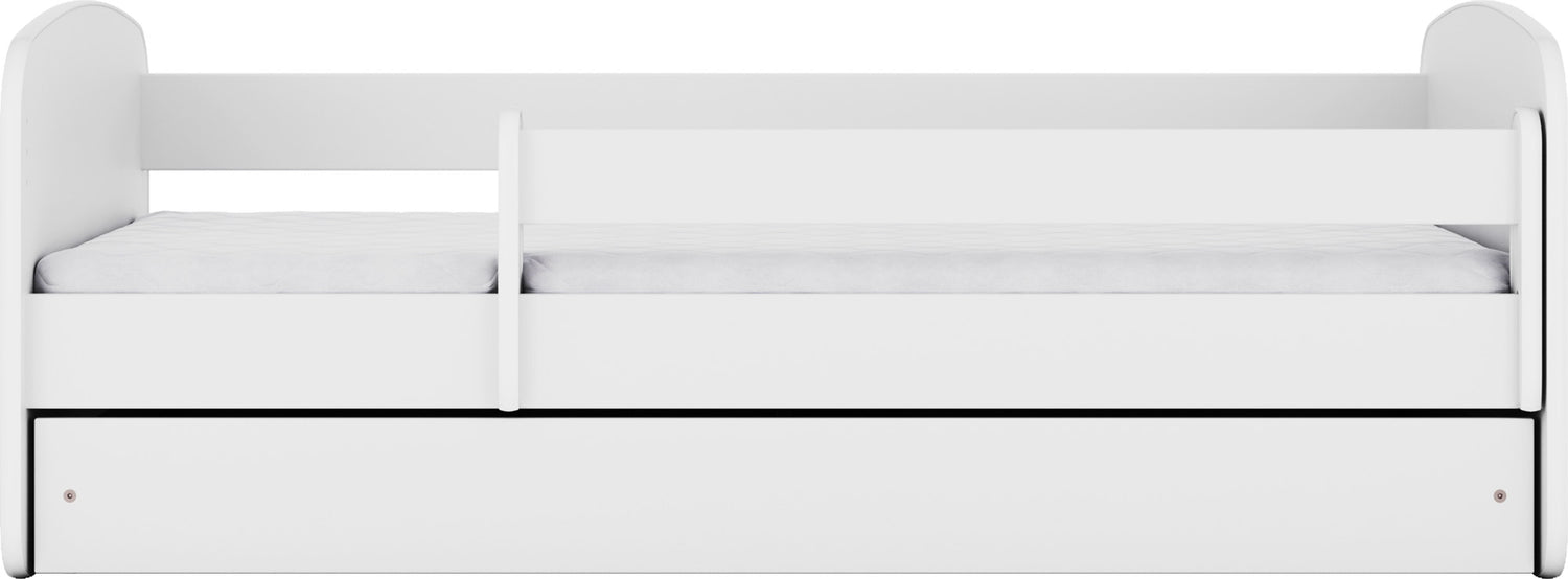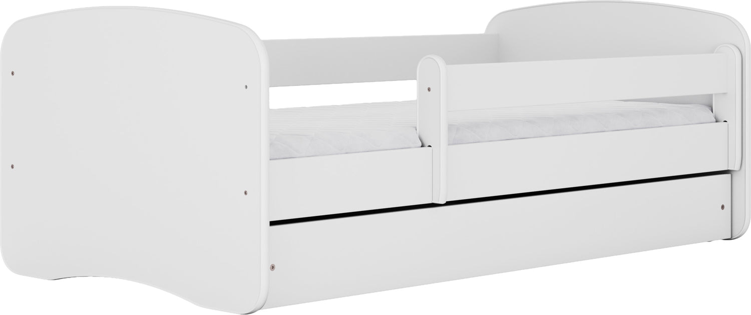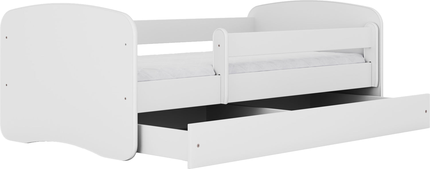 - Kompletny zestaw z materacem, stelażem, barierką ochronną i praktyczną szufladą