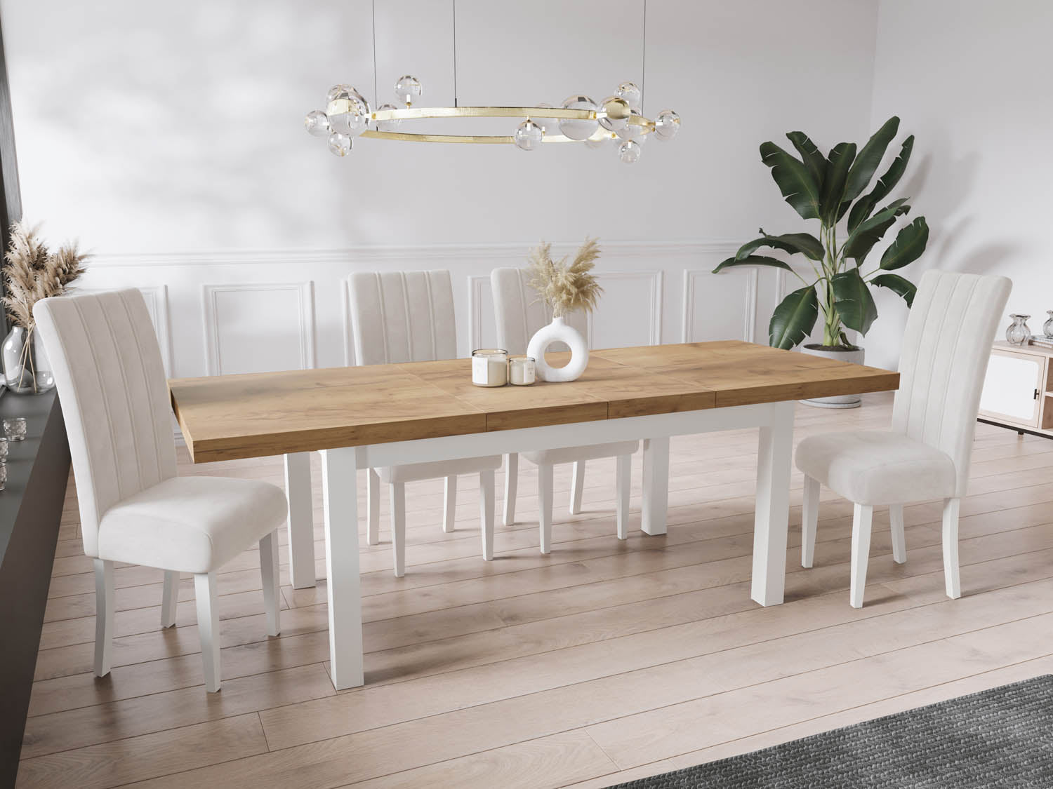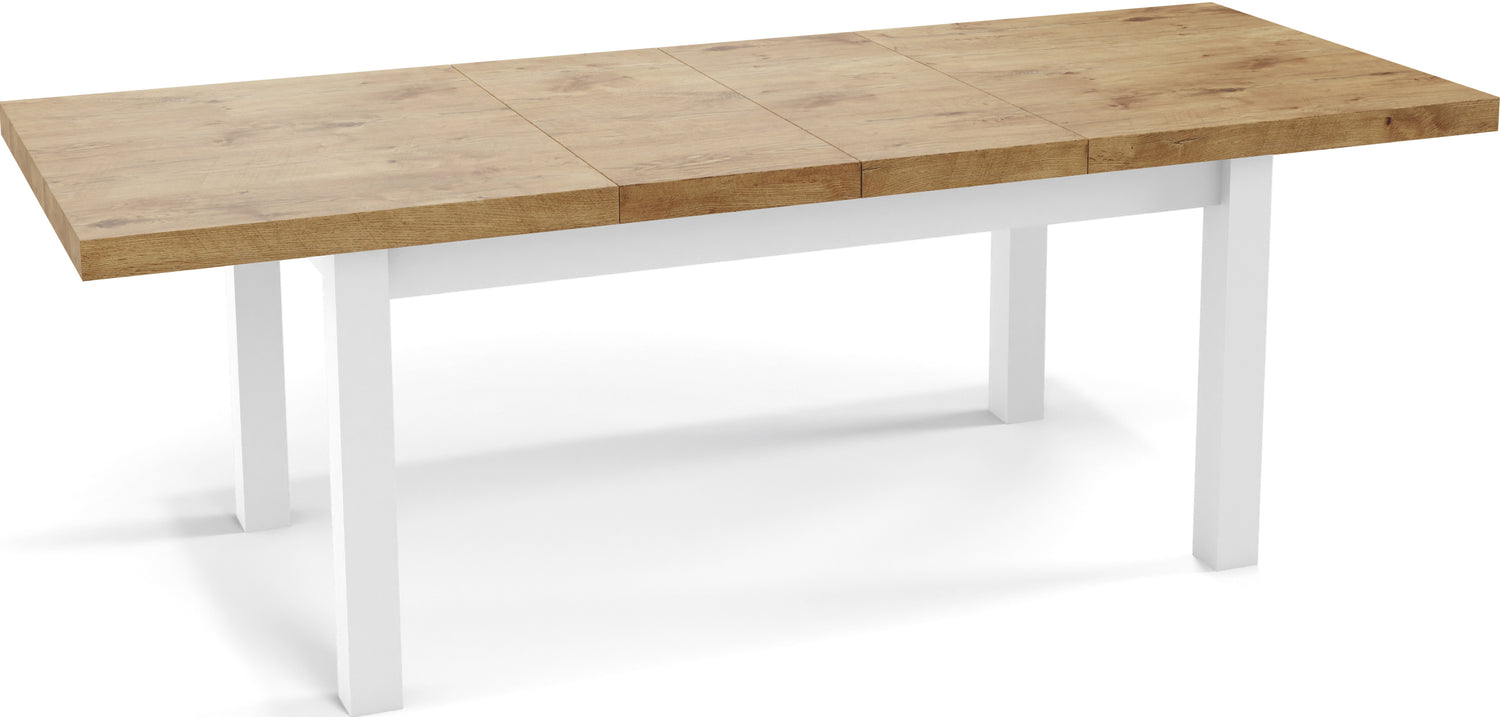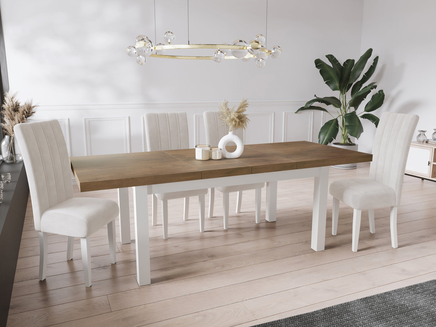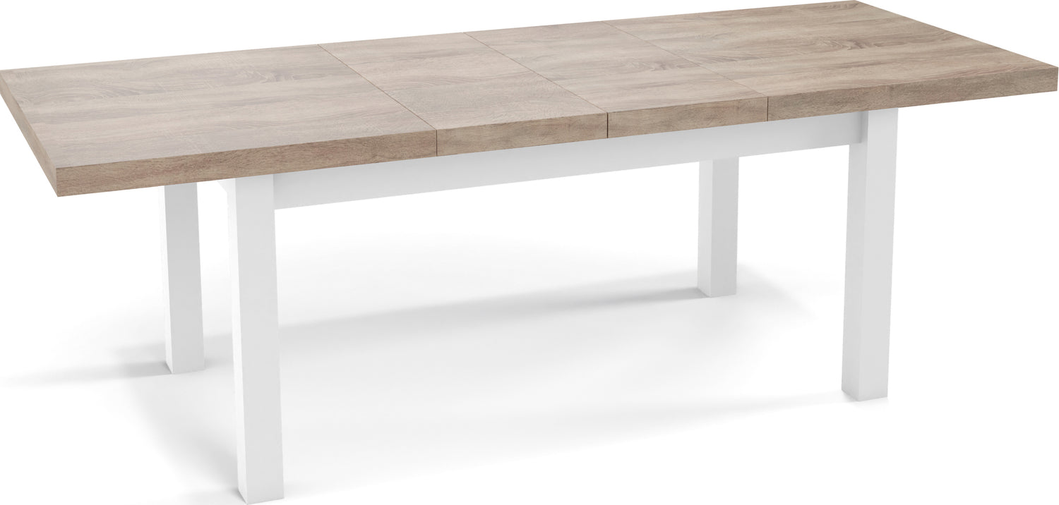 PRAKTYCZNY – Rozkładany do 240 cm, stół oferuje miejsce dla maksymalnie 10 osób (160x90 + 2x 40 cm), idealny na przyjęcia lub rodzinne spotkania. Dodatkowe blaty można wygodnie przechowywać pod blatem stołu