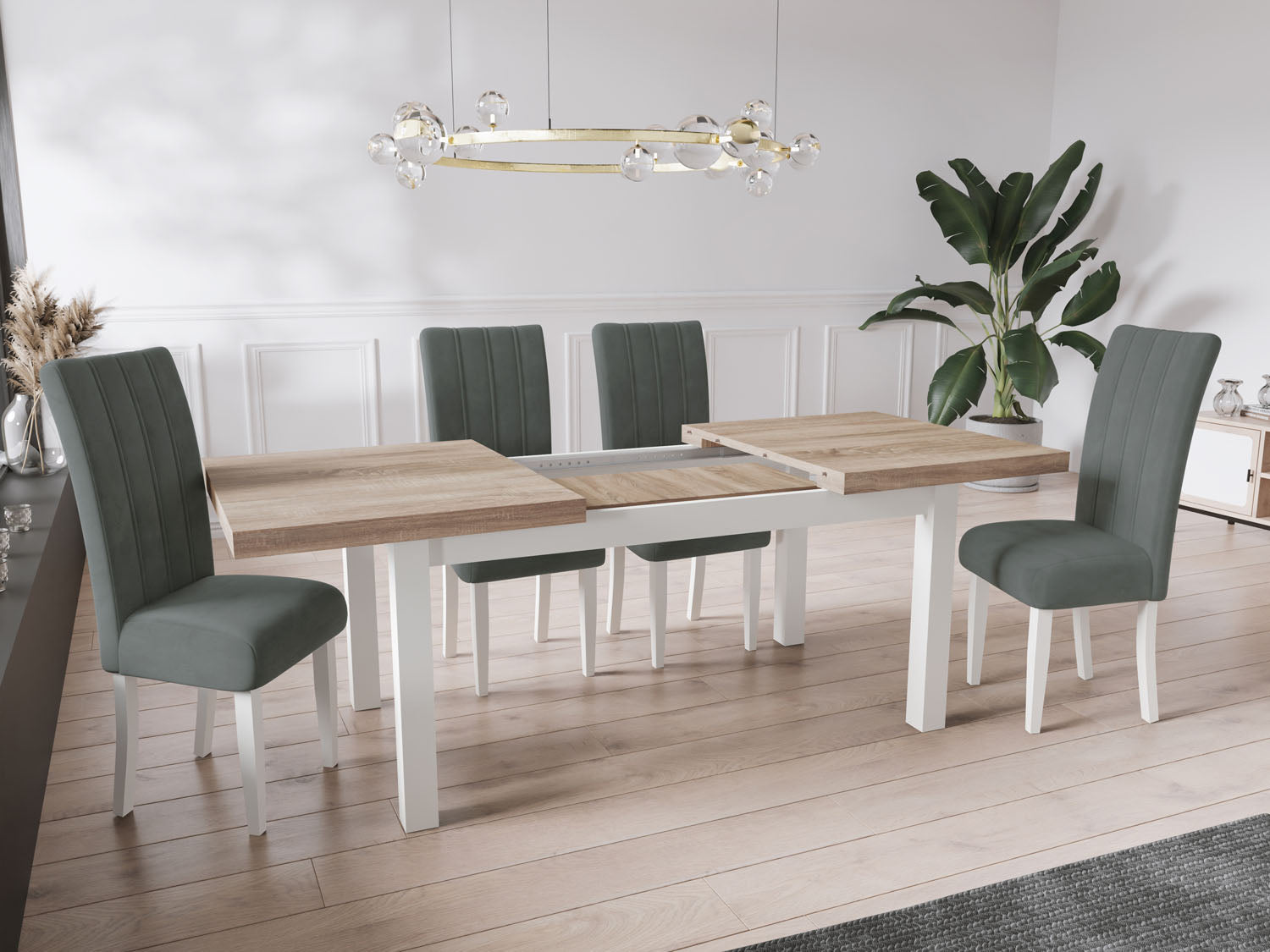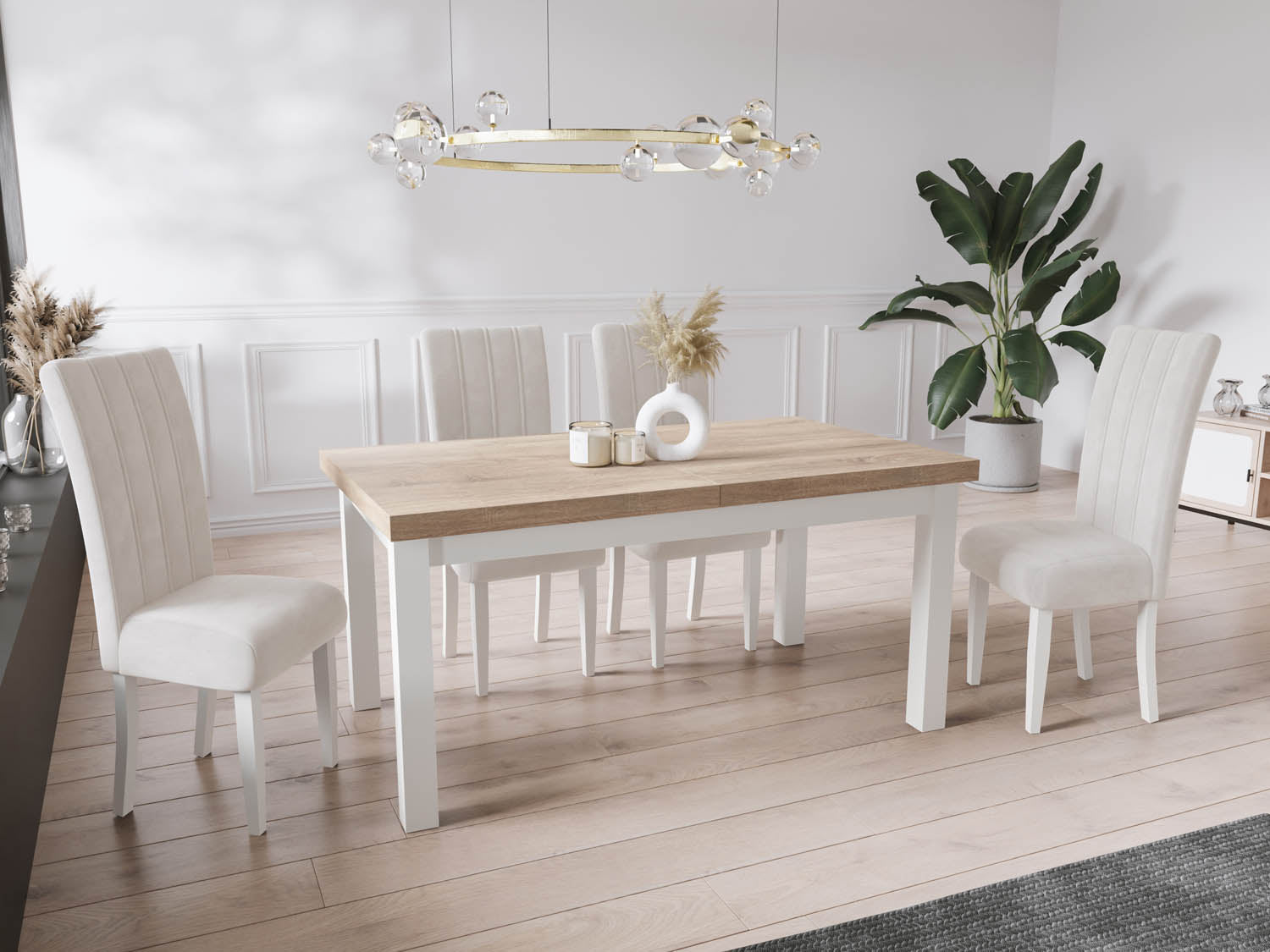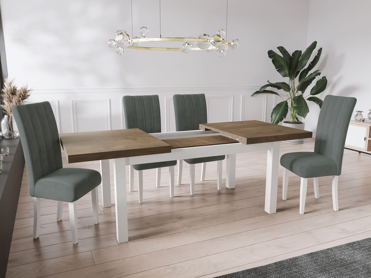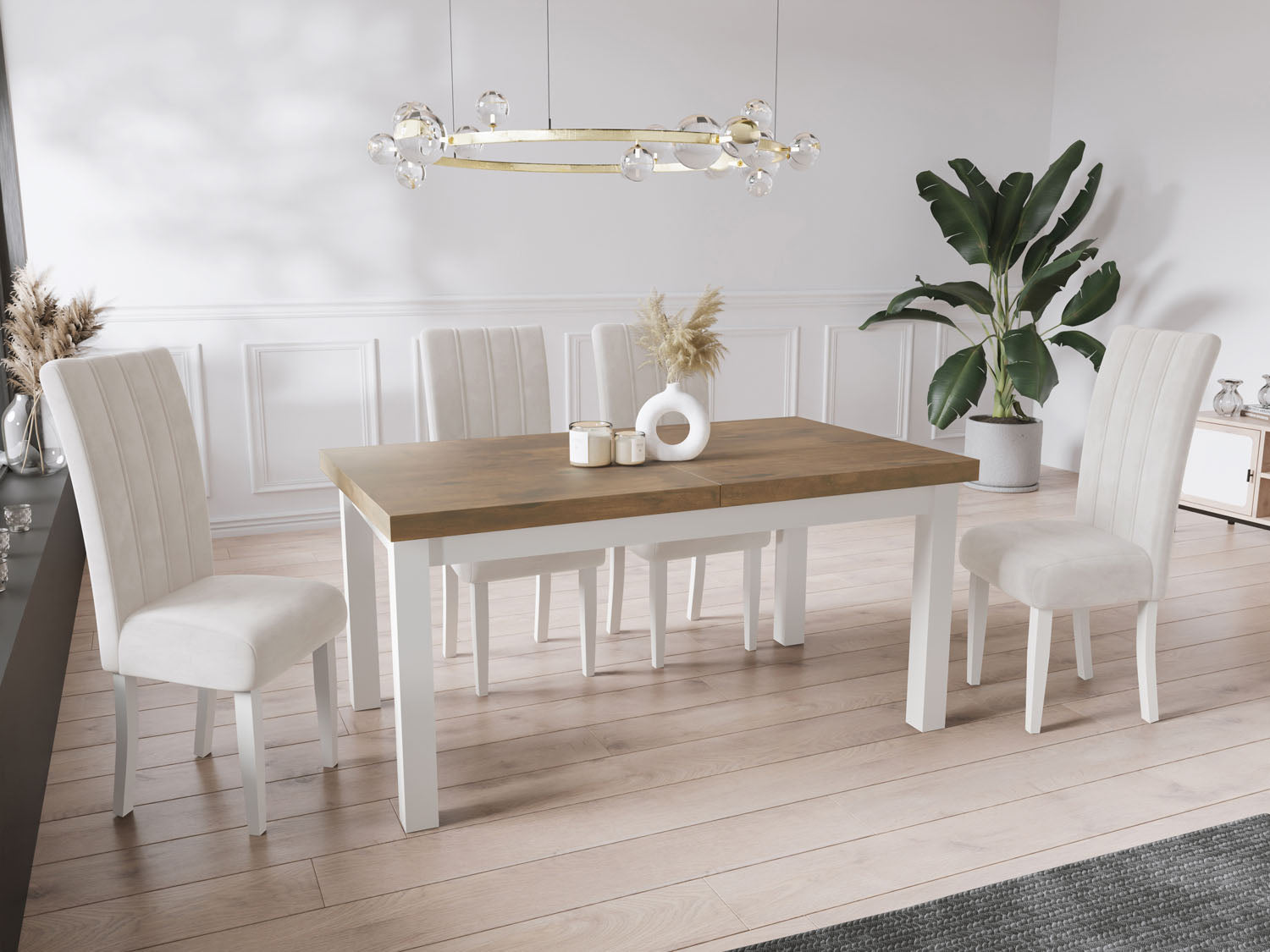 PRAKTYCZNY – Rozkładany do 240 cm, stół oferuje miejsce dla maksymalnie 10 osób (160x90 + 2x 40 cm), idealny na przyjęcia lub rodzinne spotkania. Dodatkowe blaty można wygodnie przechowywać pod blatem stołu