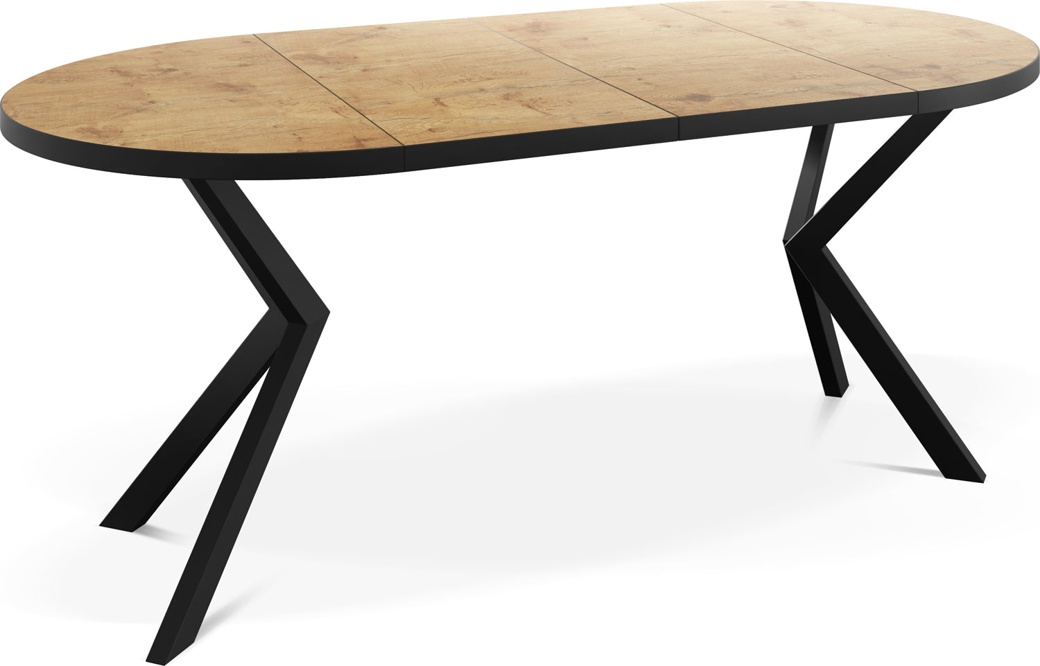 Stół jest wyposażony w funkcję rozkładania — dzięki dwóm wkładkom po 38 cm umożliwia rozszerzenie blatu do 176 lub 196 cm, w zależności od wybranej wersji.