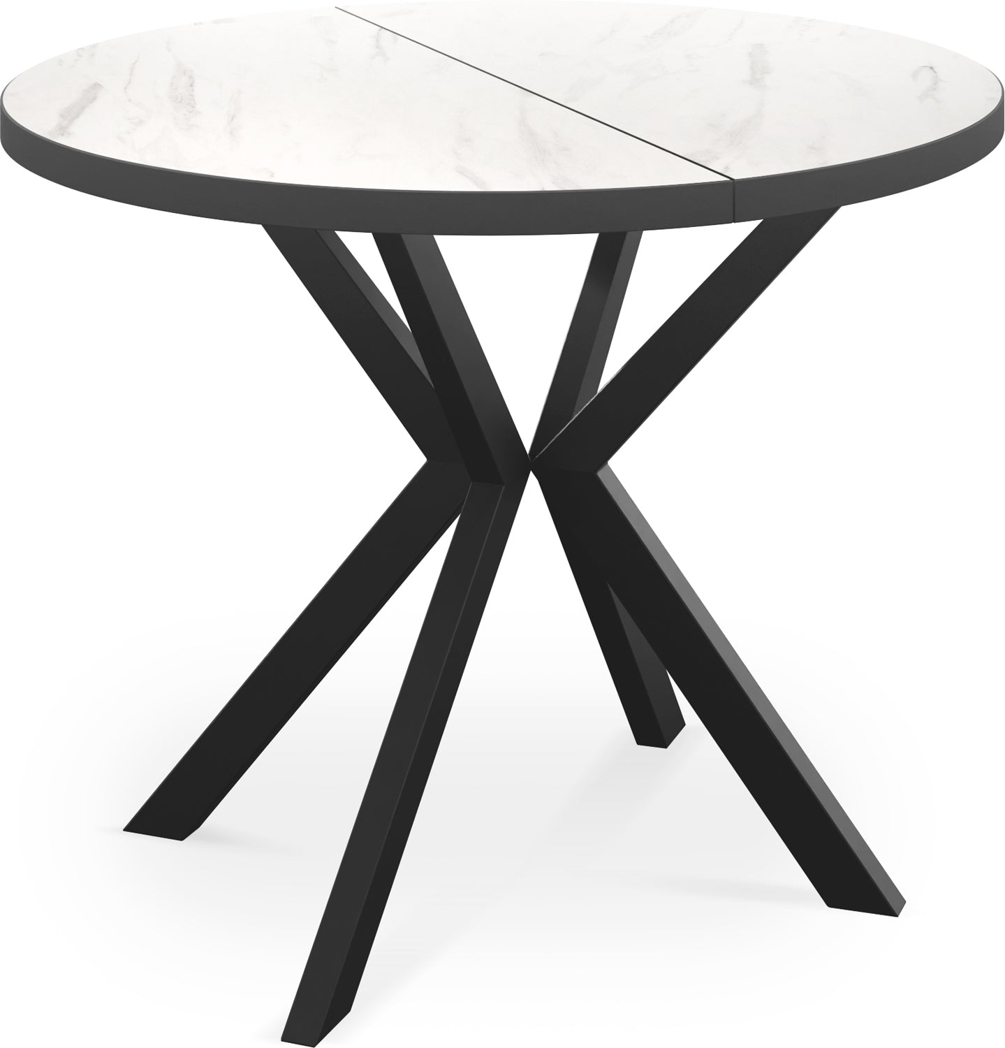 Stół jadalniany Vincento łączy nowoczesny design z praktycznymi rozwiązaniami. Okrągły blat wykończony czarnym obrzeżem oraz wyrazisty stelaż w kształcie X tworzą ponadczasową formę, która doskonale wpisuje się zarówno w nowoczesne, jak i skandynawskie wnętrza.