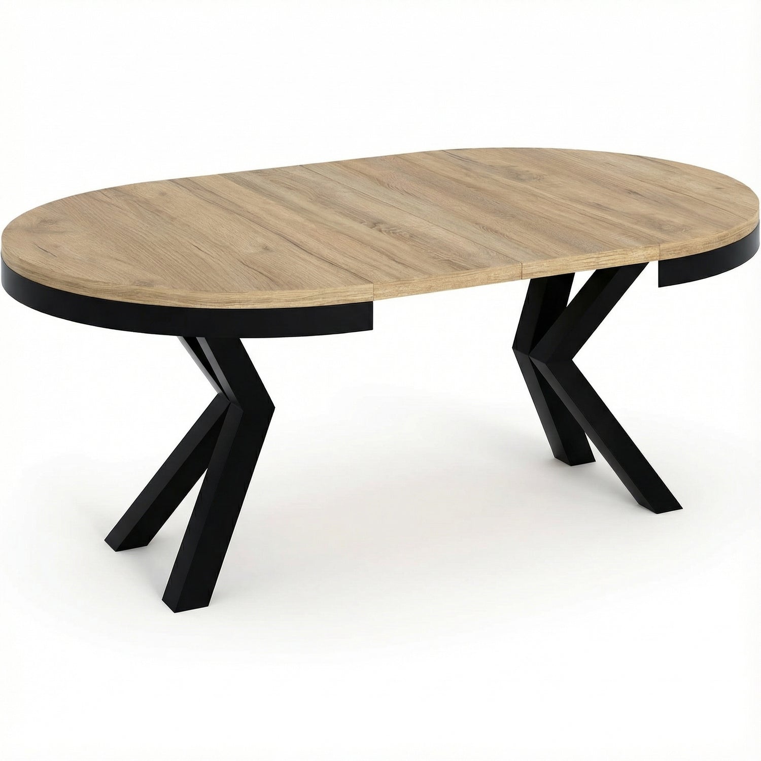 Praktyczny mechanizm rozkładania umożliwia szybkie przekształcenie okrągłej formy w większą, owalną powierzchnię. To rozwiązanie, które zapewnia wygodę w mniejszych pomieszczeniach i dodatkowe miejsce, gdy jest ono potrzebne.