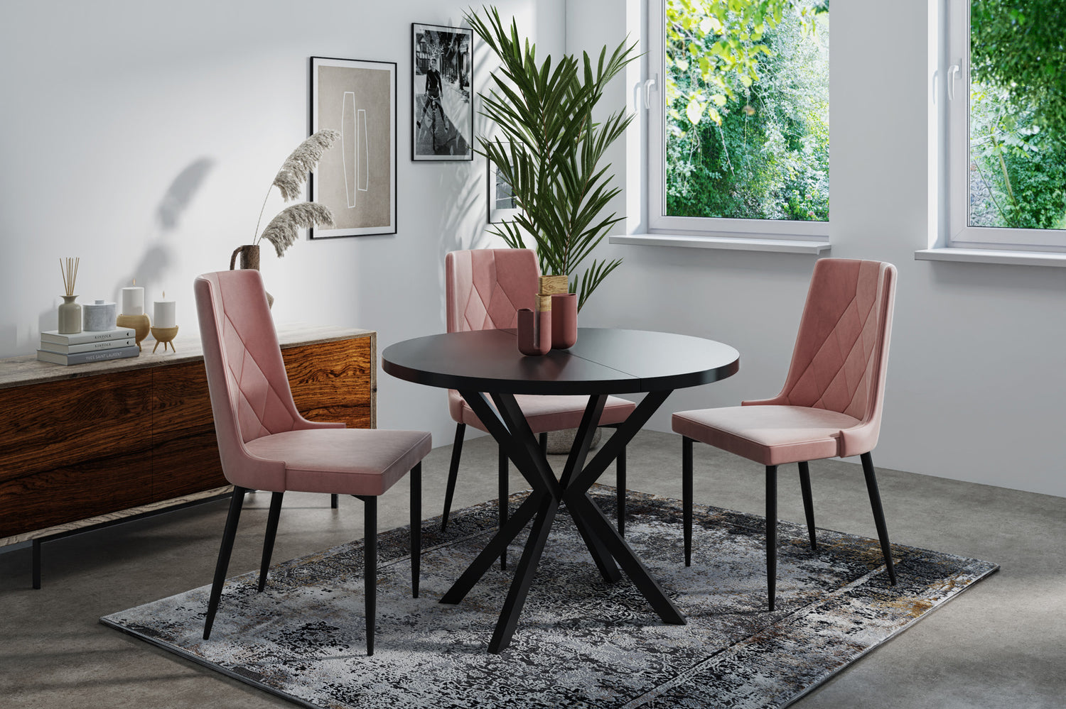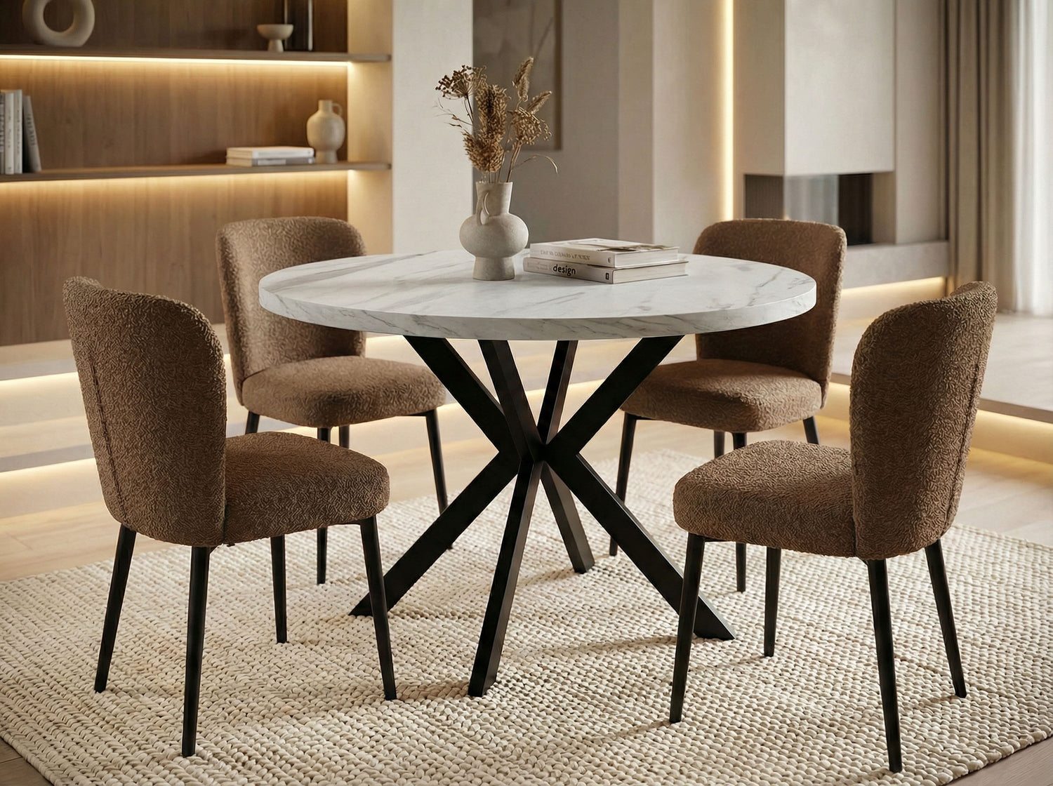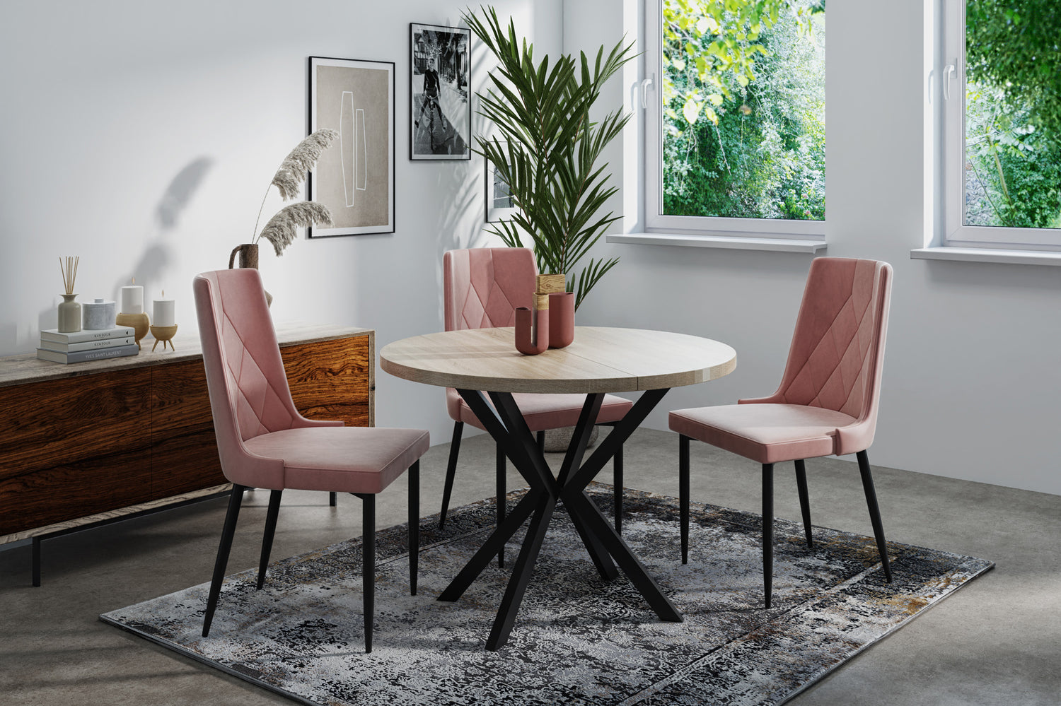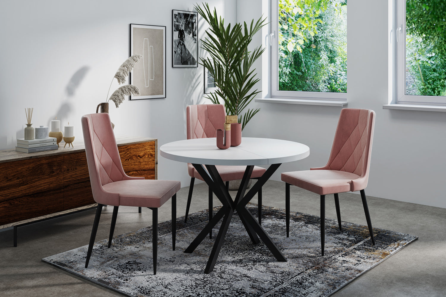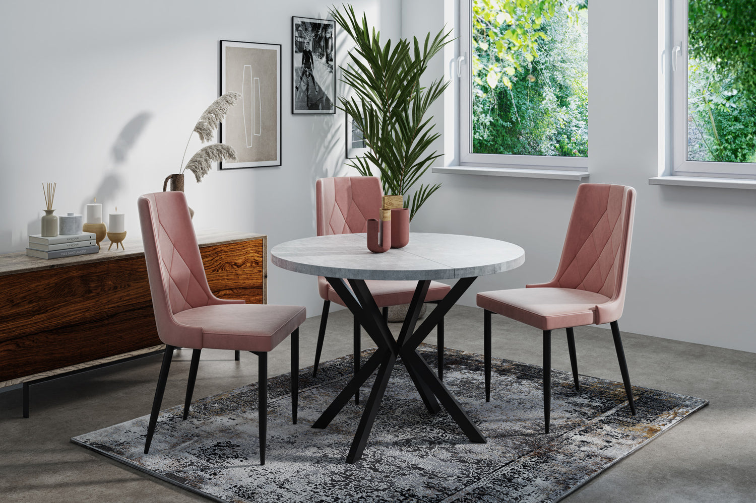 Stół jadalniany Valeo łączy nowoczesny design z praktycznymi rozwiązaniami. Okrągły blat oraz charakterystyczny stelaż w kształcie X tworzą ponadczasową formę, która świetnie wpisuje się zarówno w nowoczesne, jak i bardziej klasyczne wnętrza.
