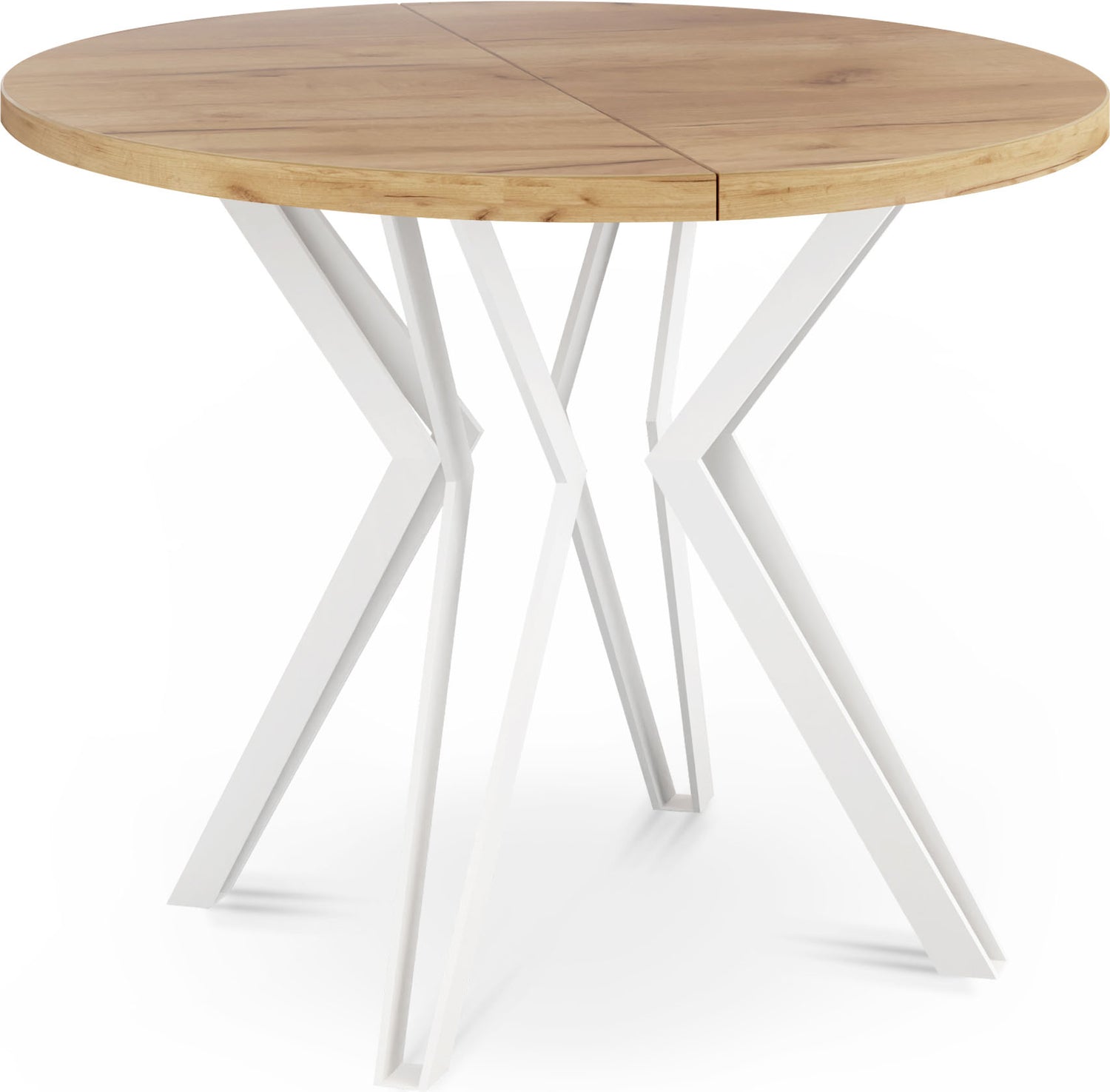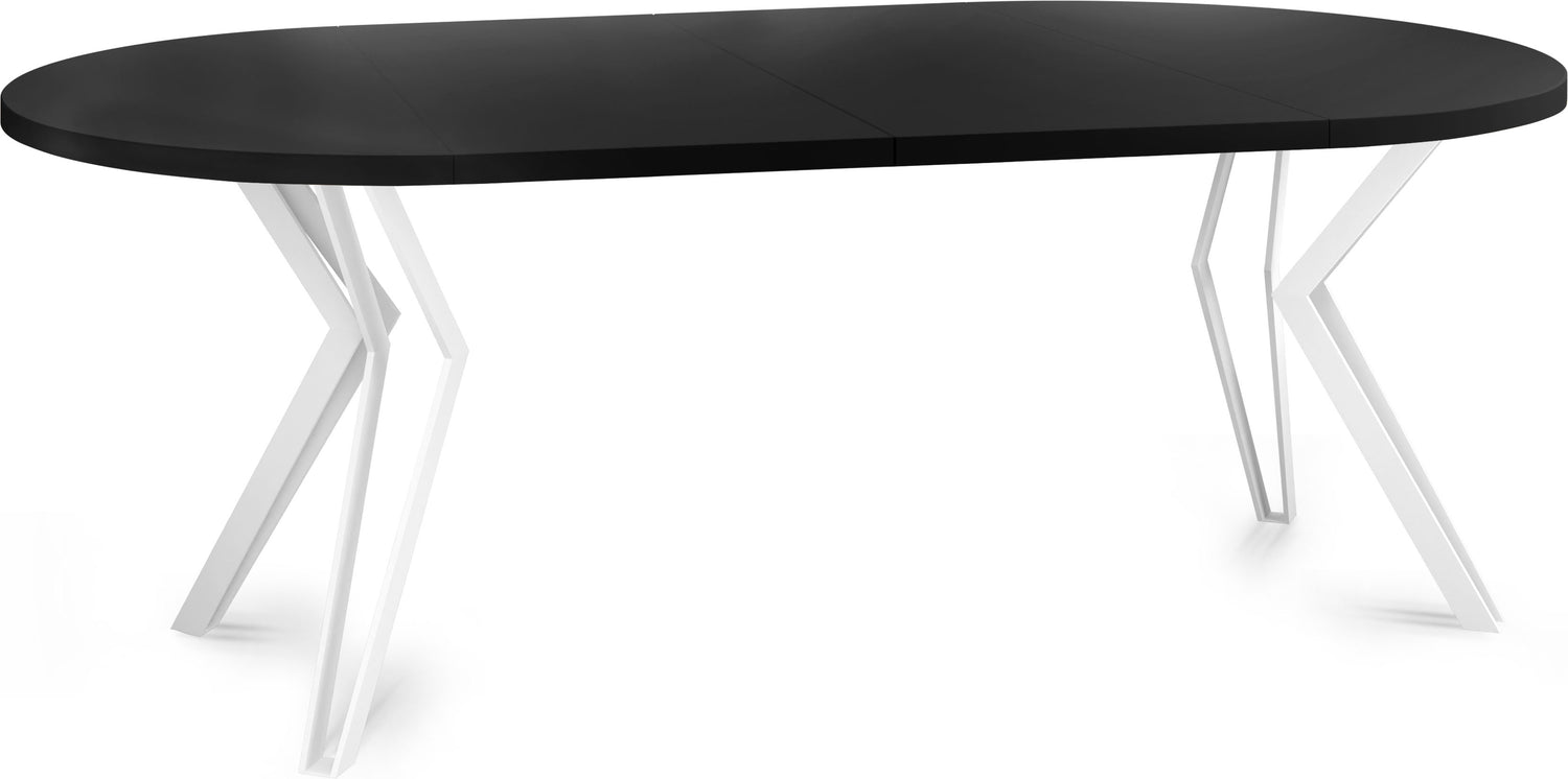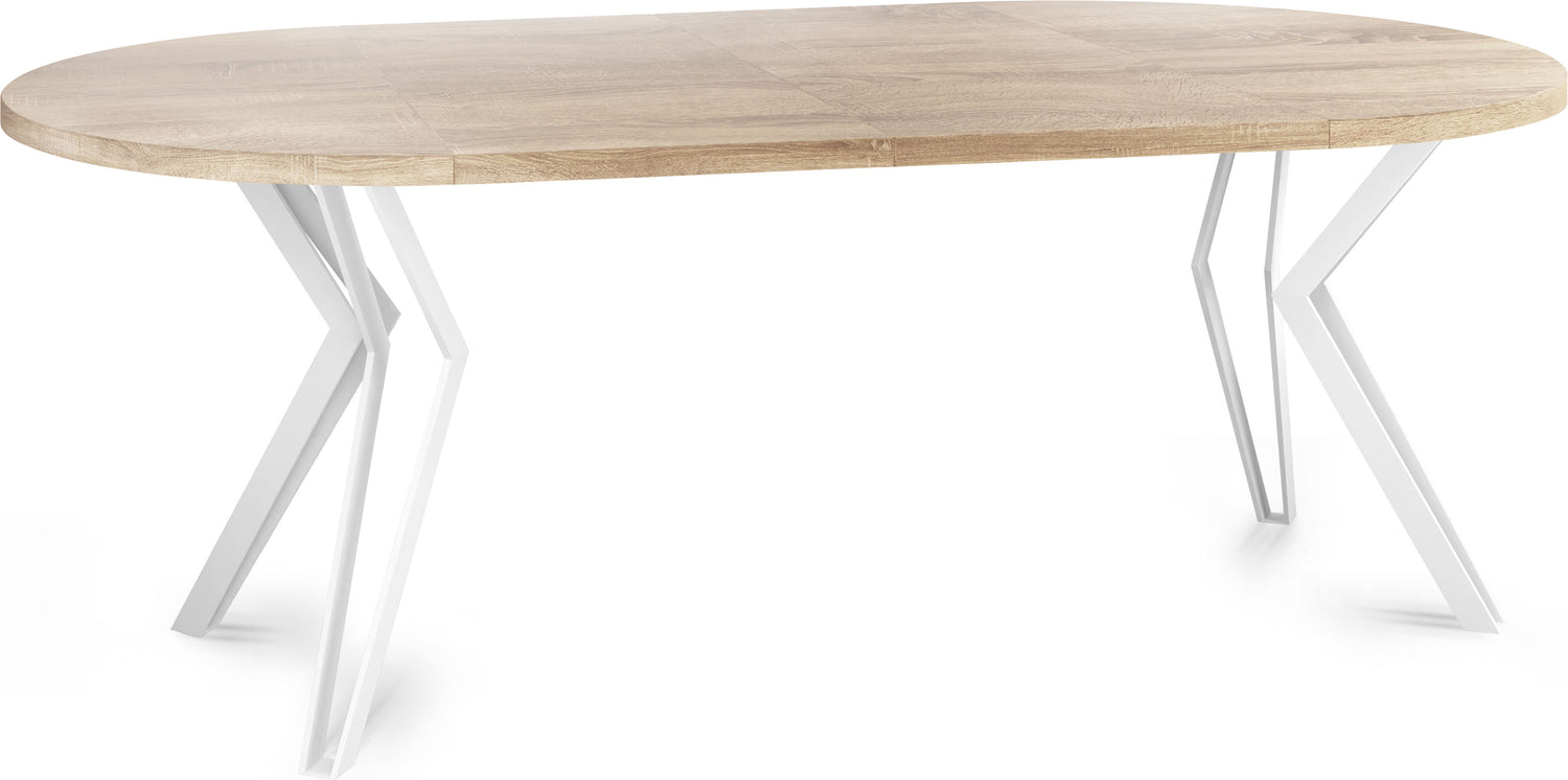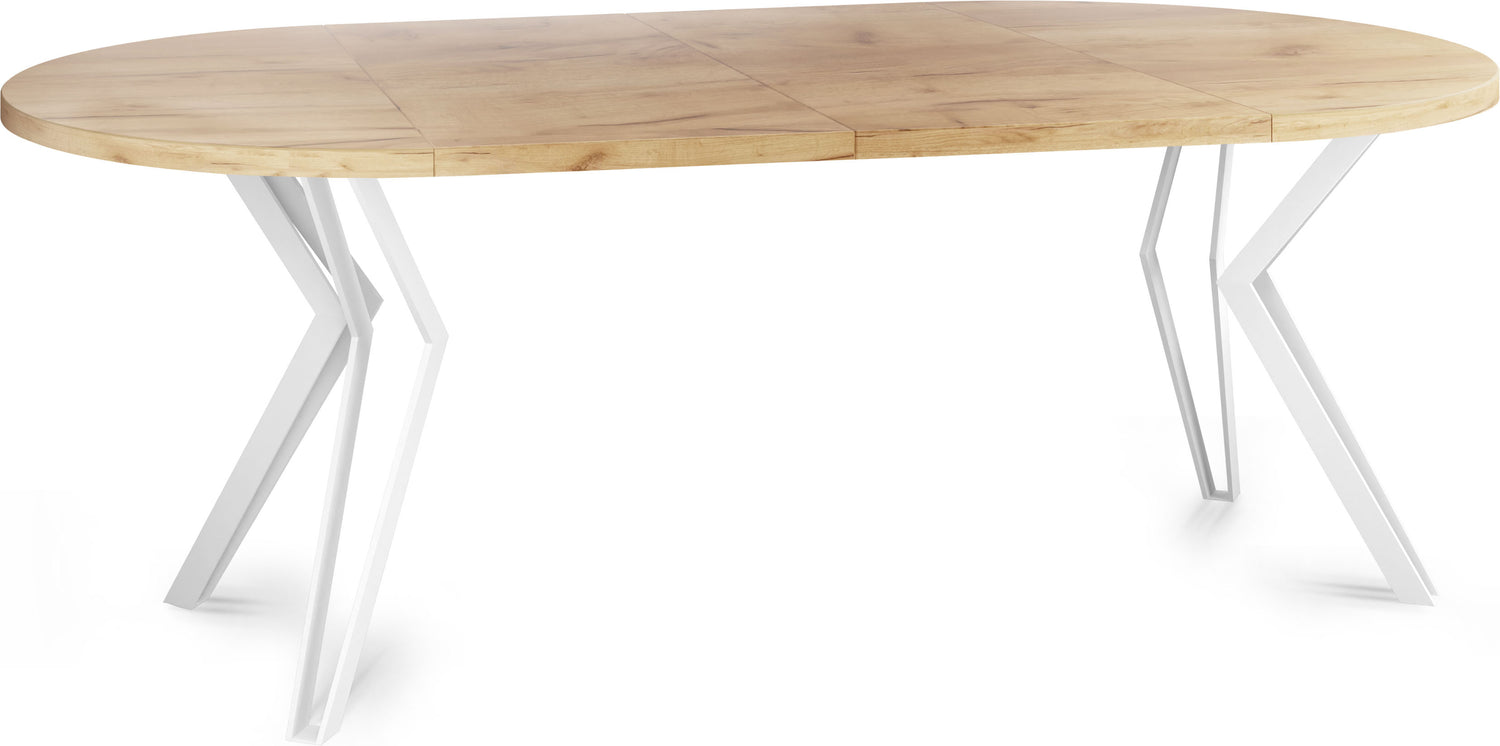 Model Ravena dostępny jest w dwóch wariantach średnicy: 100 cm oraz 120 cm. Każdą wersję można wygodnie powiększyć za pomocą dwóch wkładek, uzyskując odpowiednio 176 cm lub 196 cm długości – idealne rozwiązanie na większe spotkania lub rodzinne obiady.