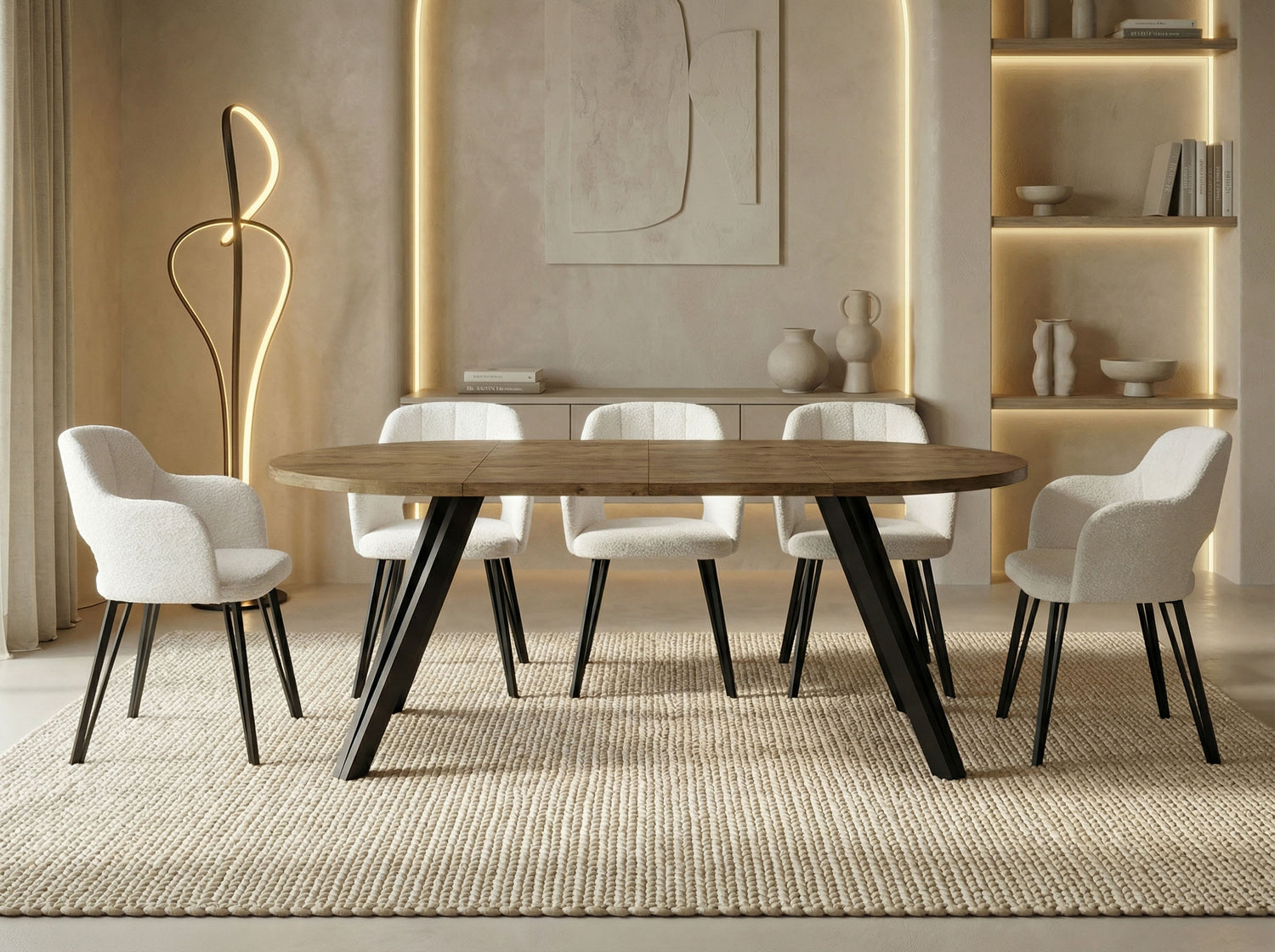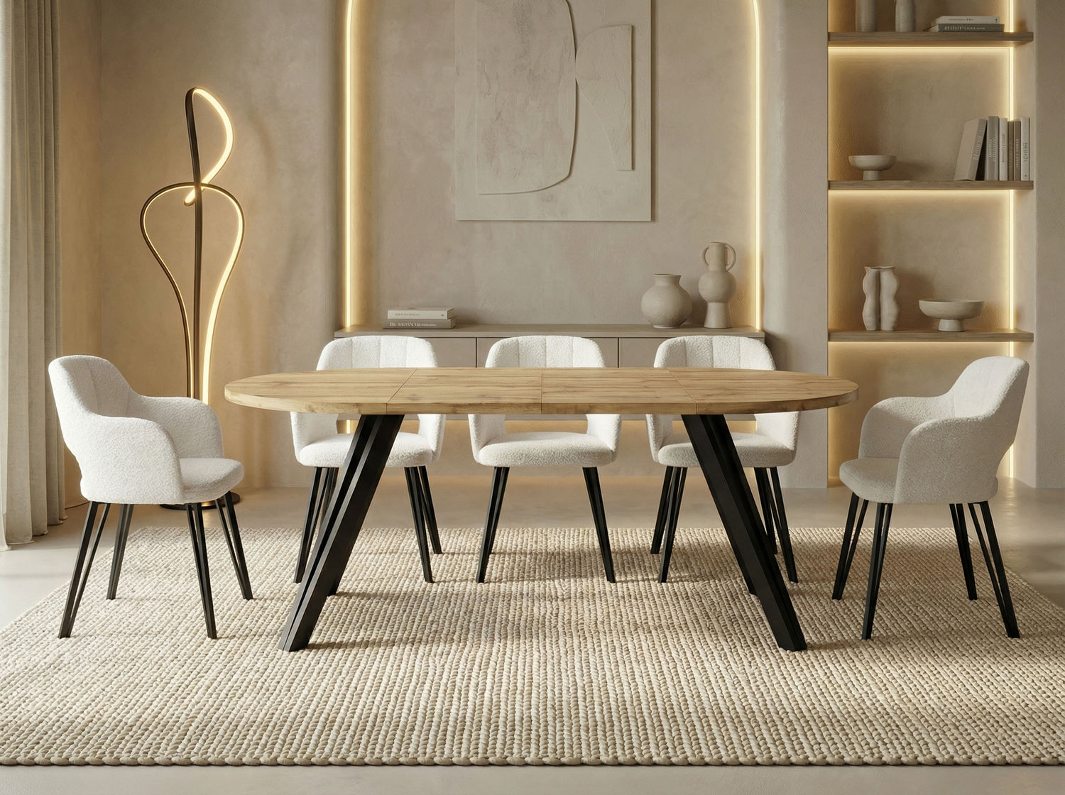 Okragly stol RAVANO łączy minimalistyczny design z praktyczna funkcjonalnościa. W zalezności od wybranego wariantu dostępny jest jako kompaktowy stol o średnicy 100 cm na co dzień lub można go wygodnie rozłozyć do 140 cm lub 180 cm – idealny zarowno na wspołne posiłki w małym gronie, jak i na rodzinne uroczystości czy wieczory z gośćmi.