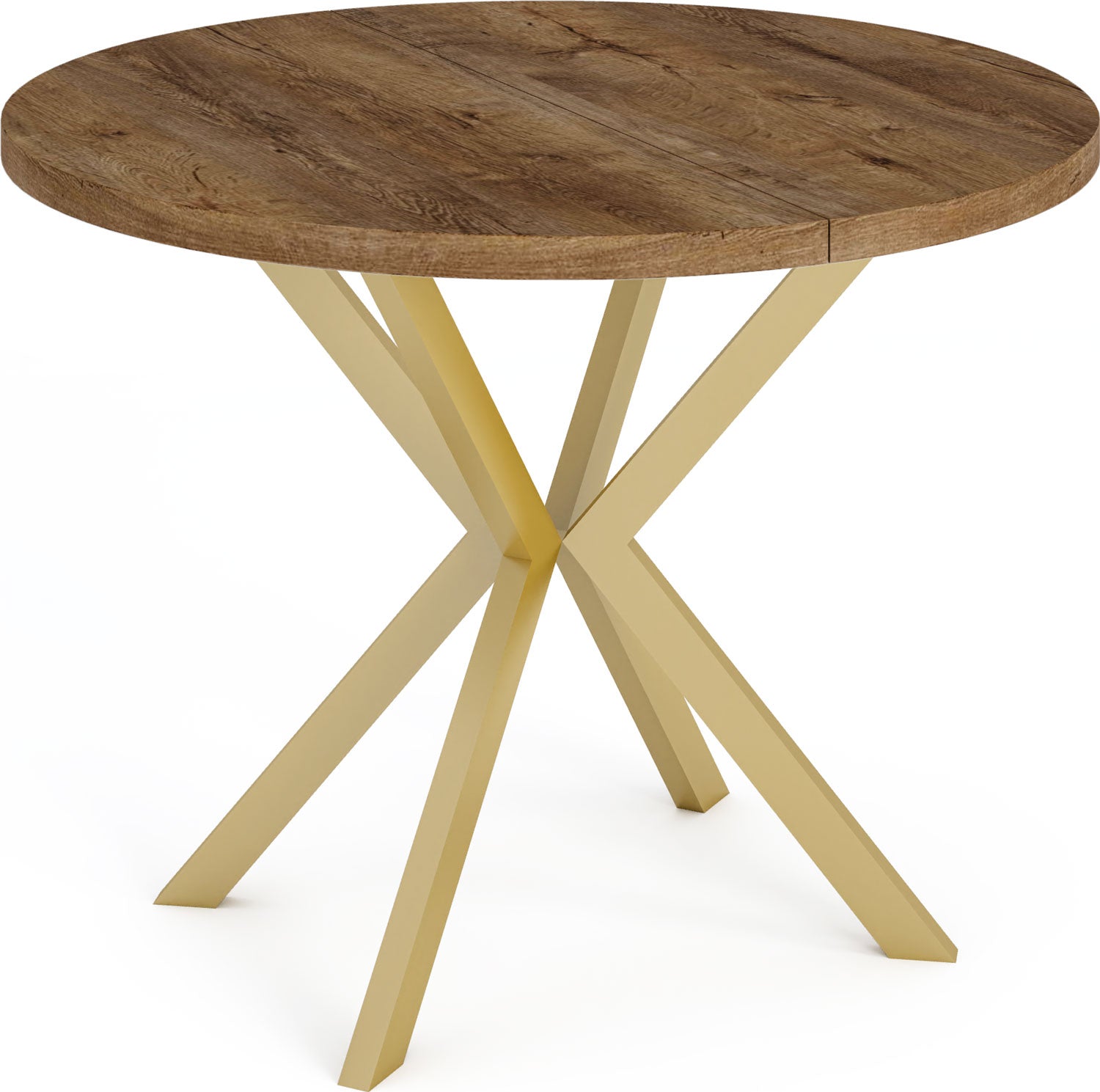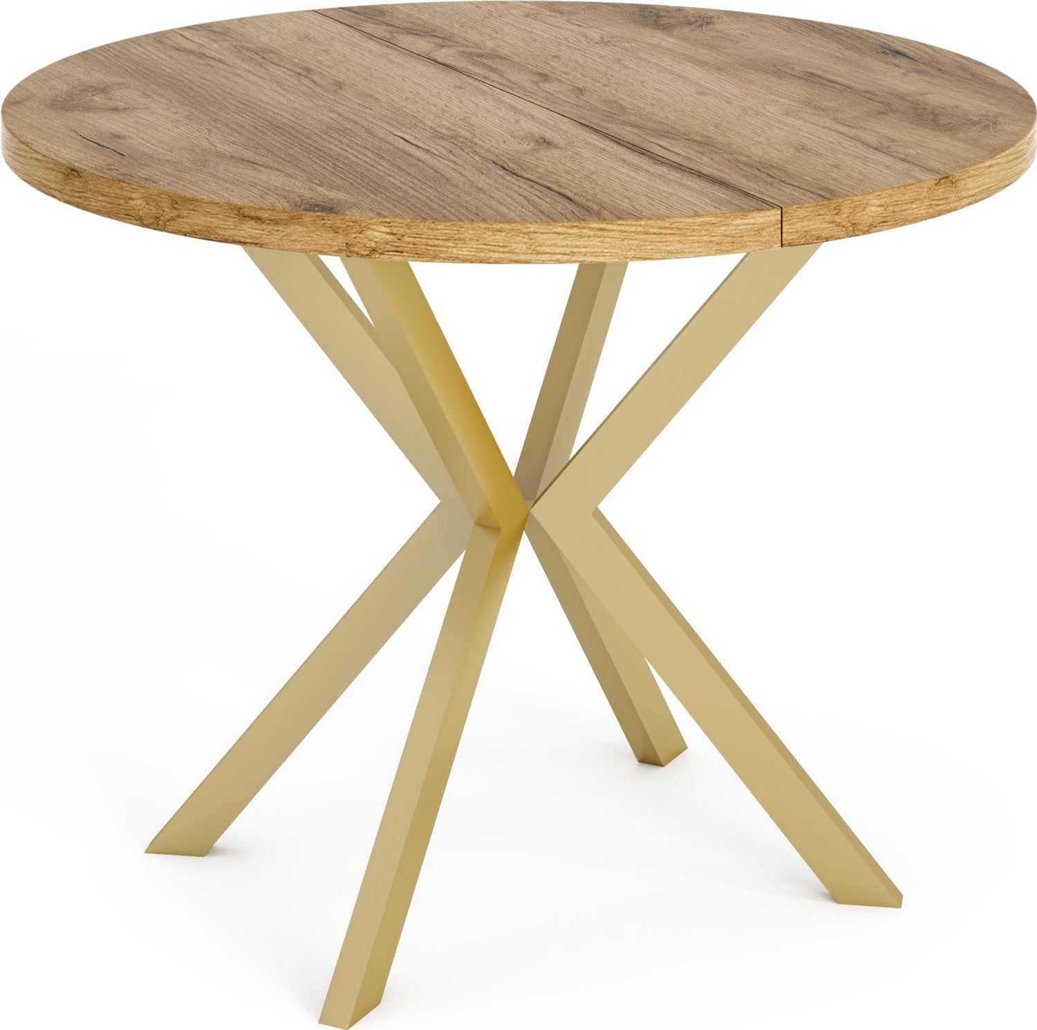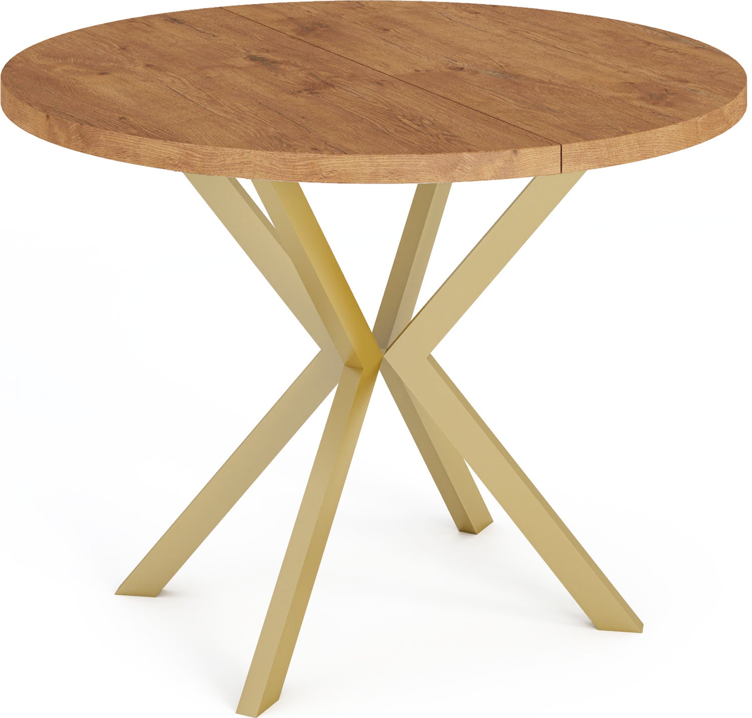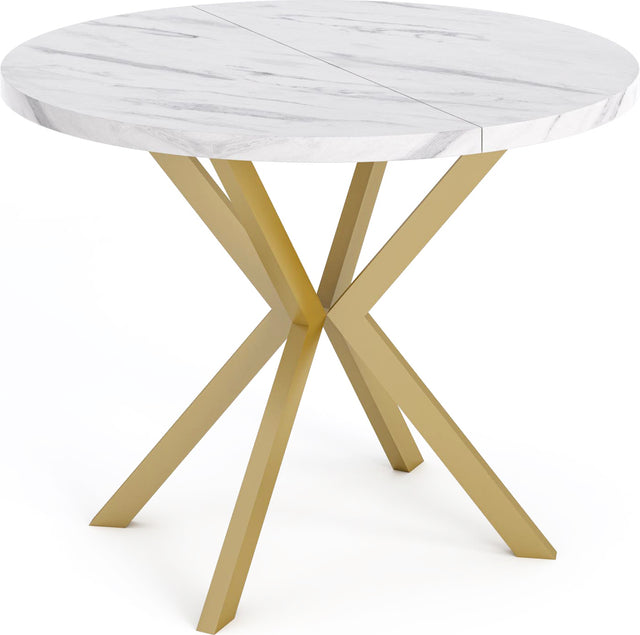 Elegancja i funkcjonalność w jednym Stół Flora łączy nowoczesny design z praktyczną funkcjonalnością. Okrągły kształt i charakterystyczna złota podstawa w kształcie X tworzą ponadczasowy wygląd, który harmonijnie wpisuje się w Twój dom.