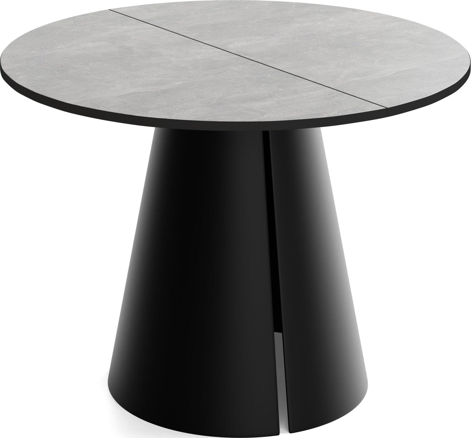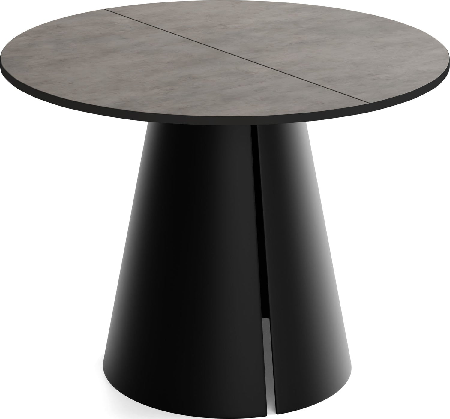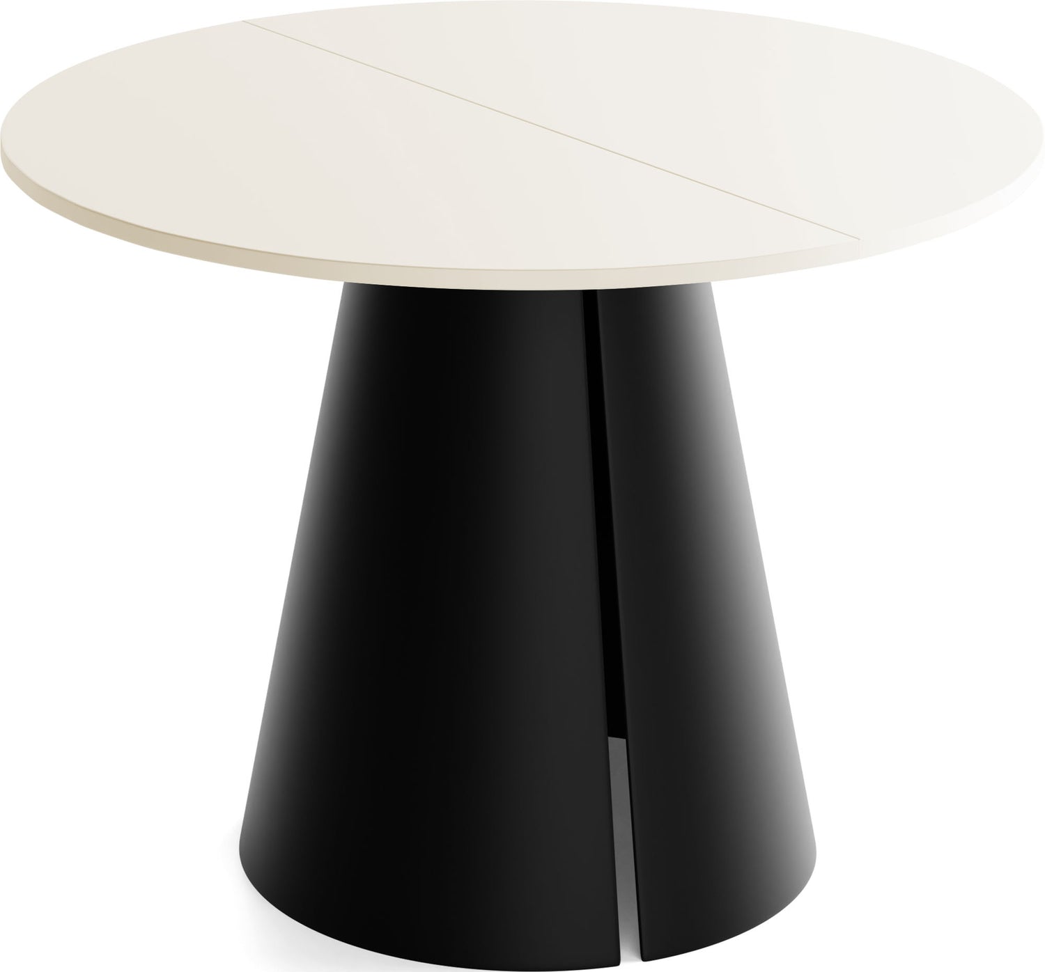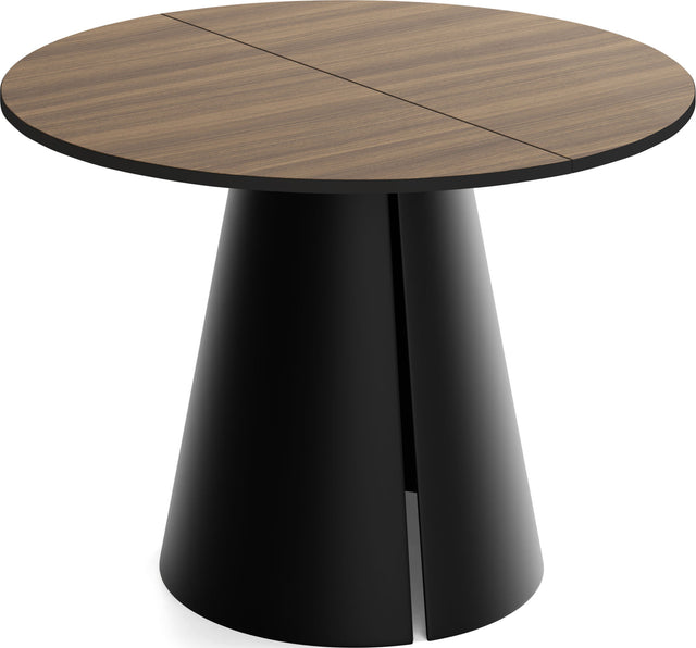 Stół jadalniany Lamio łączy nowoczesny, wyrazisty design z praktyczną funkcją rozkładania. Okrągły blat można w mgnieniu oka powiększyć – świetnie sprawdzi się podczas spotkań towarzyskich. Masywna, stożkowa metalowa podstawa w kolorze beżowego kaszmiru nadaje stołowi architektoniczną „obecność”, zapewnia dużo miejsca na nogi i jednocześnie gwarantuje najwyższą stabilność.