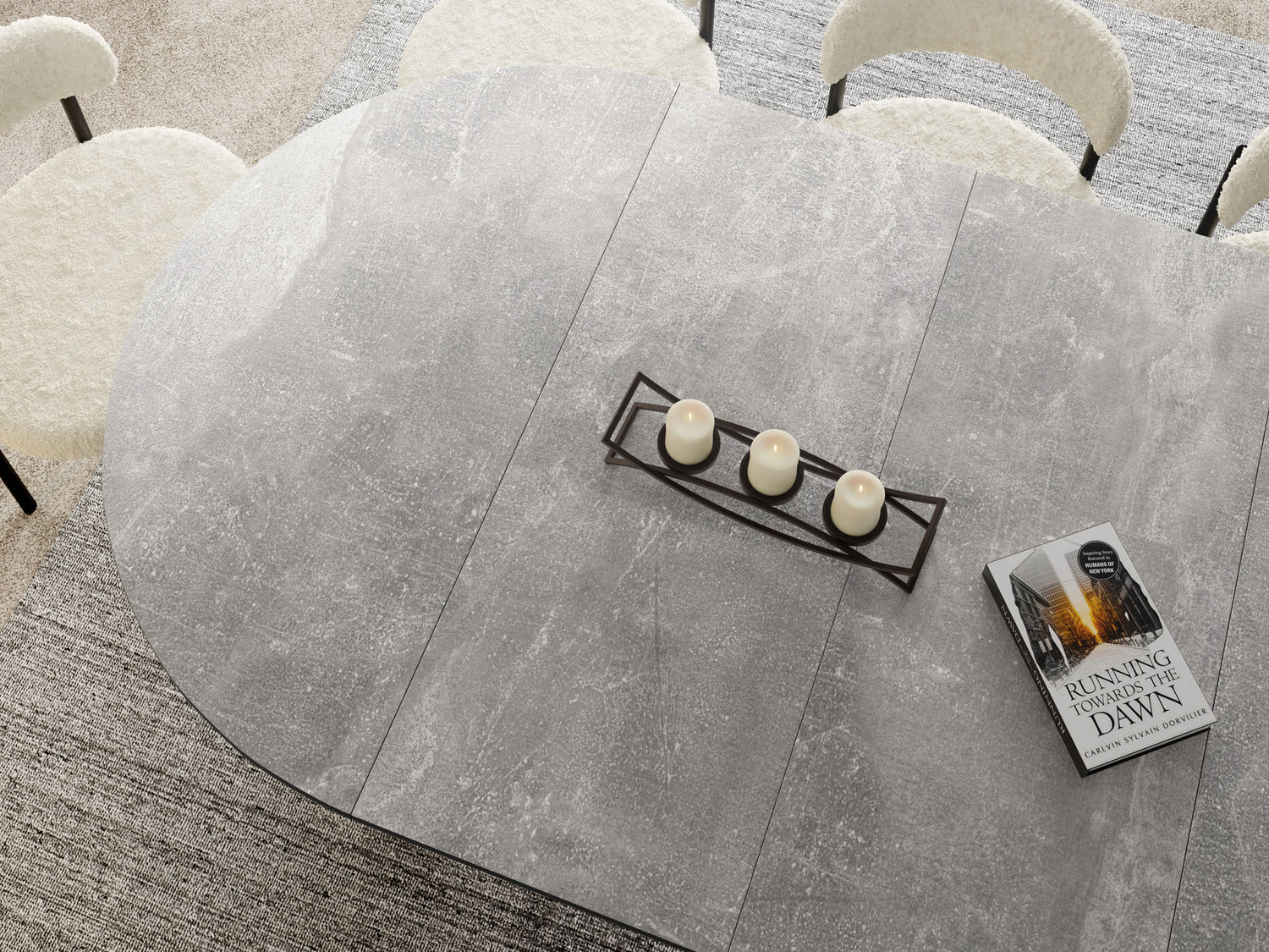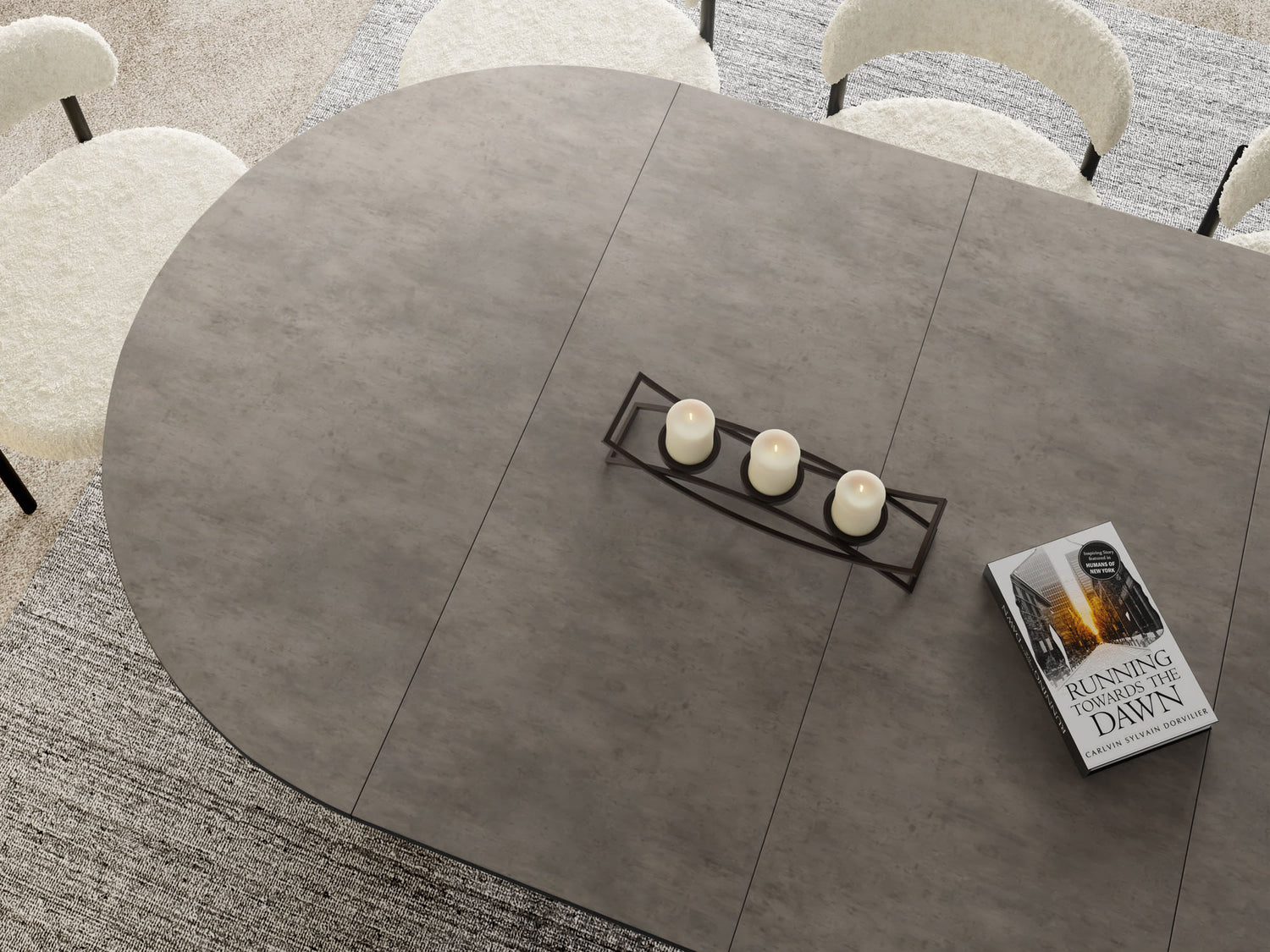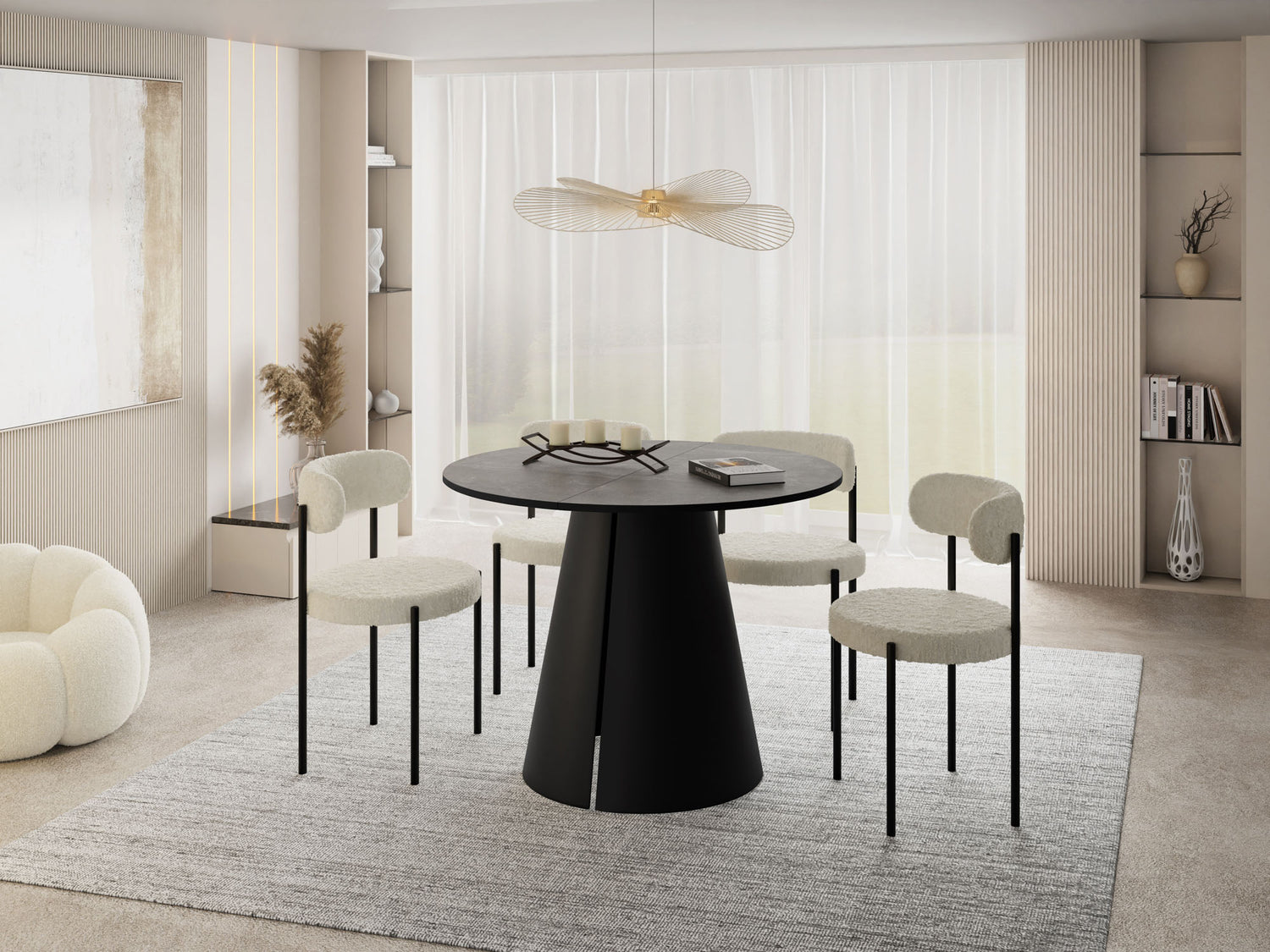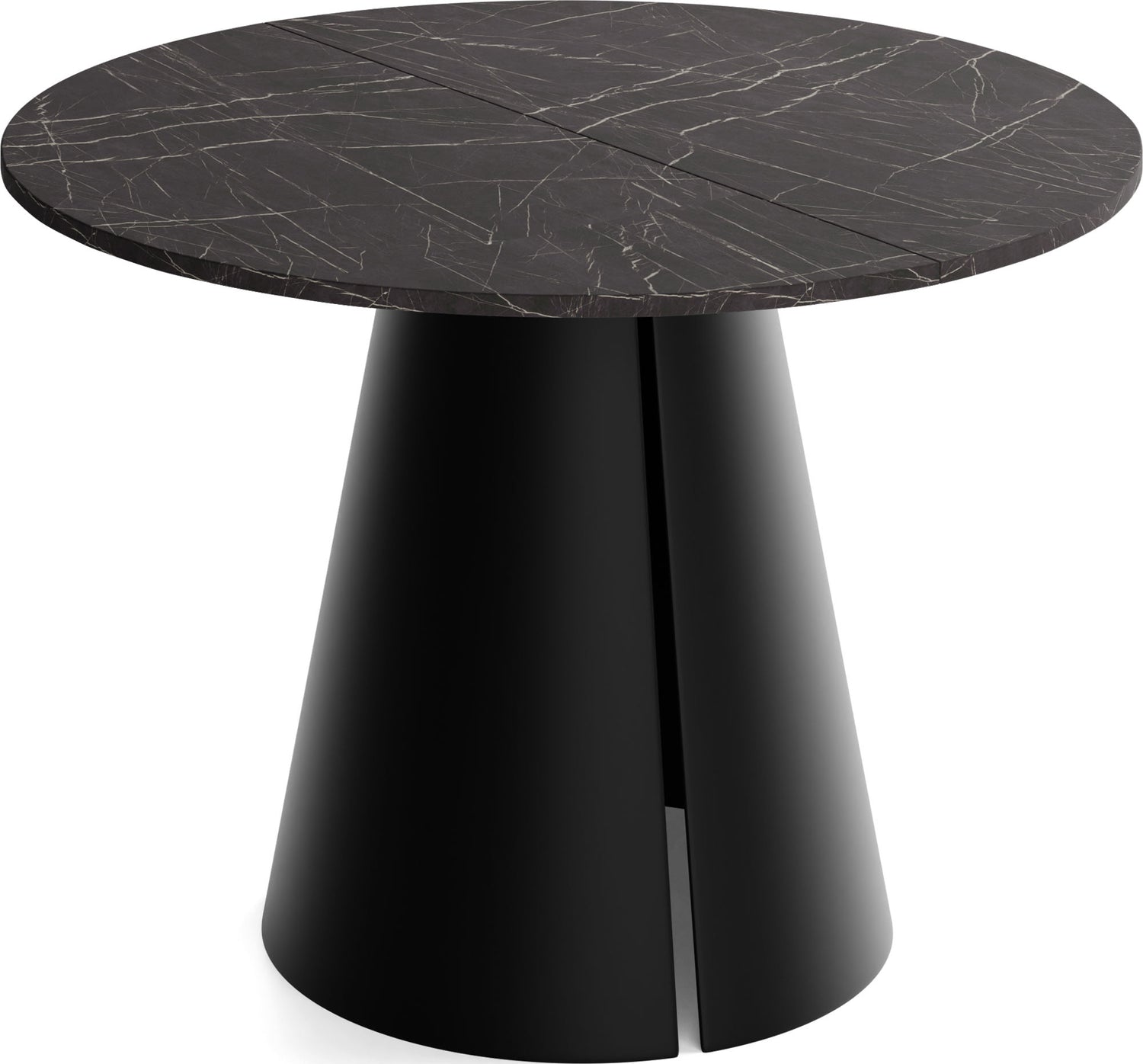 Stół jadalniany Lamio łączy nowoczesny, wyrazisty design z praktyczną funkcją rozkładania. Okrągły blat można w mgnieniu oka powiększyć – świetnie sprawdzi się podczas spotkań towarzyskich. Masywna, stożkowa metalowa podstawa w kolorze beżowego kaszmiru nadaje stołowi architektoniczną „obecność”, zapewnia dużo miejsca na nogi i jednocześnie gwarantuje najwyższą stabilność.