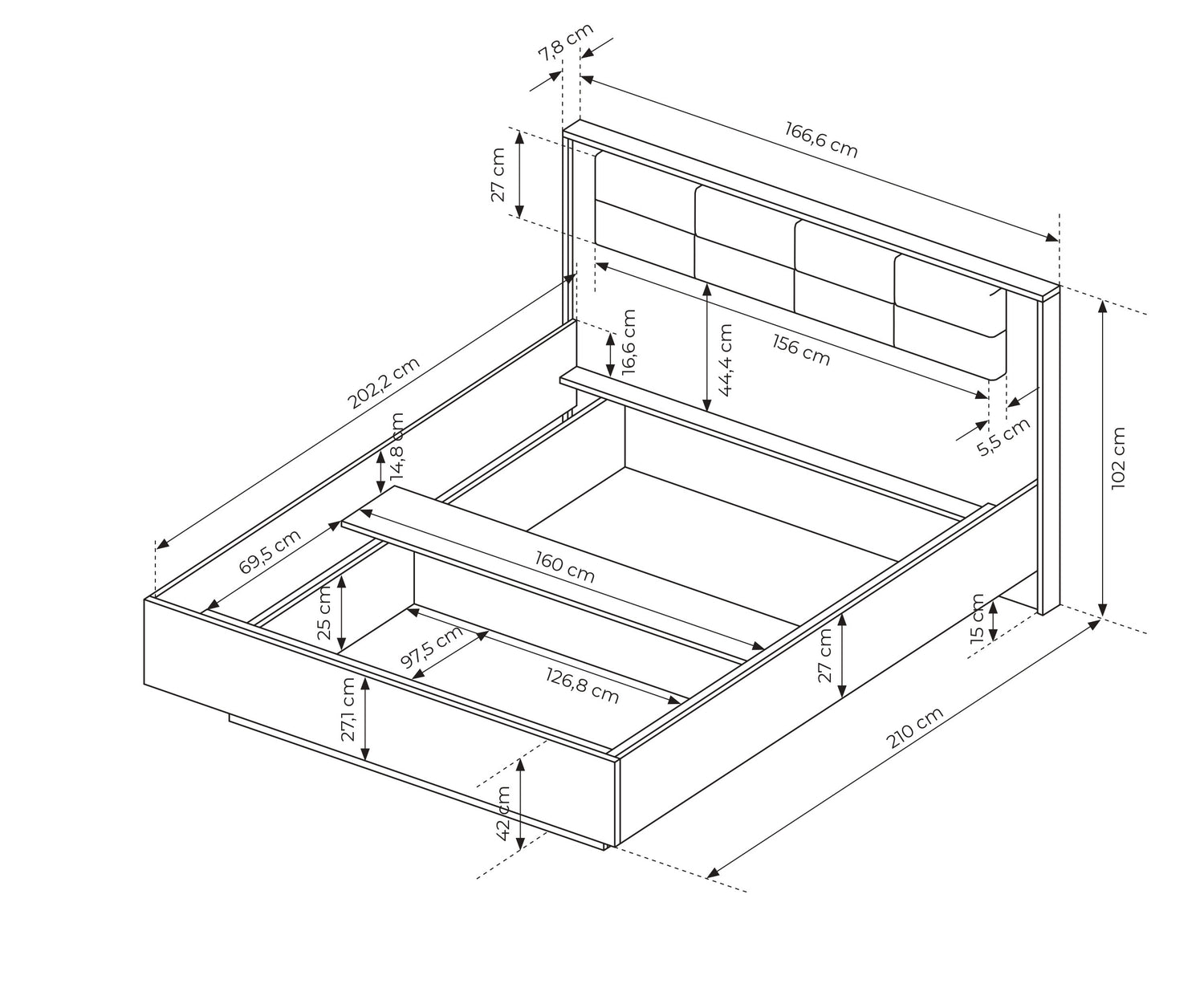 Wymiary całkowite: 166,6/102/210 cm (szer./wys./dł.)