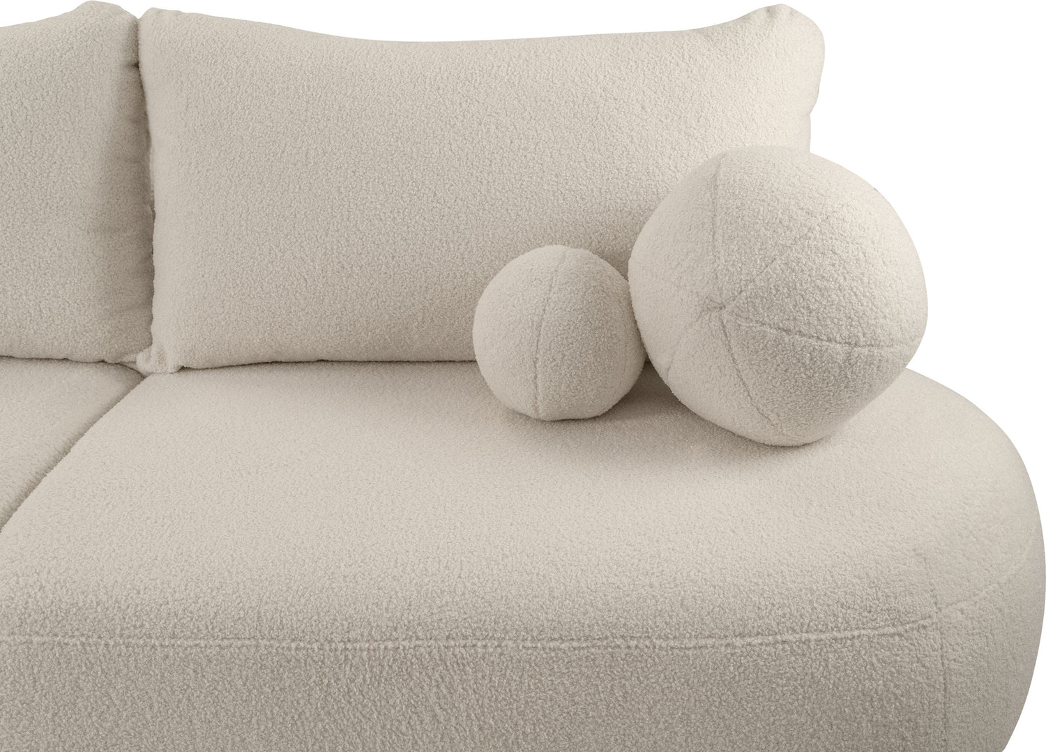 Sofa Bolla łączy nowoczesny skandynawski wygląd z wysoką funkcjonalnością i wyjątkowym komfortem. Miękki, strukturalny materiał typu bouclé nadaje jej przytulny, elegancki charakter. Tył sofy jest również wykończony wierzchnią tkaniną, dzięki czemu model jest wolnostojący i prezentuje się świetnie ustawiony nawet w centrum pomieszczenia.