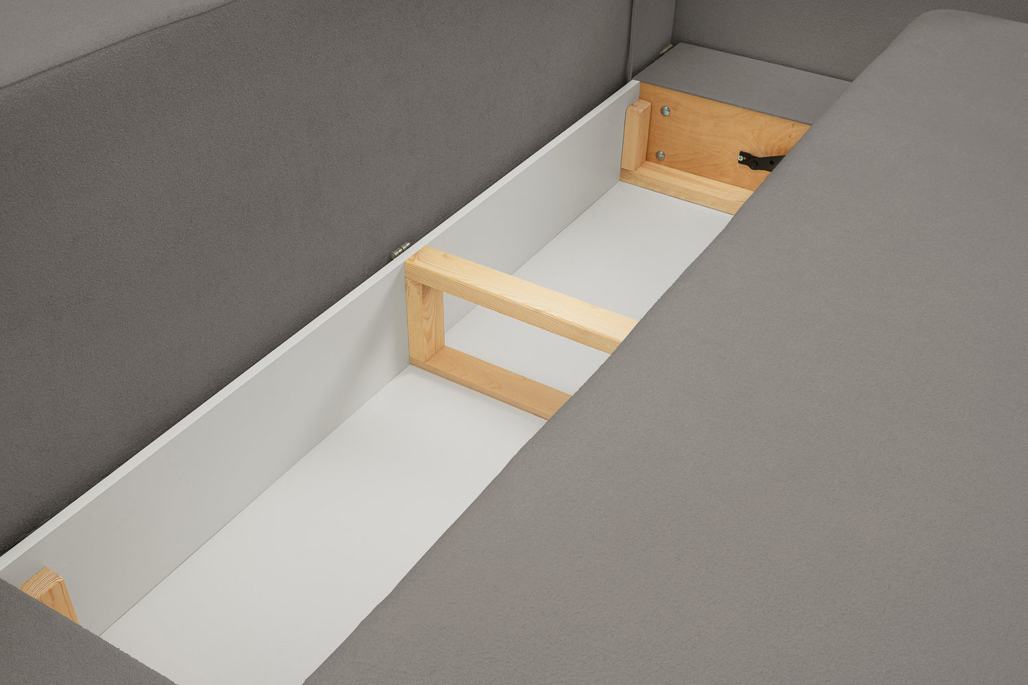 Sofa Greta to eleganckie połączenie nowoczesnego wzornictwa i praktycznej funkcjonalności. Przestronne siedzisko, wygodna funkcja spania oraz pojemnik na pościel sprawiają, że Greta świetnie sprawdzi się w salonie lub pokoju dziennym.