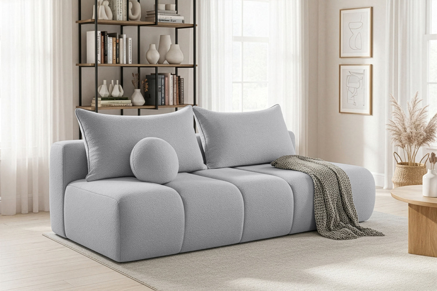 Sofa Milla - Kość Słoniowa Bukla / 3-Osobowa jest na stanie i zostanie wysłany, gdy tylko będzie dostępny