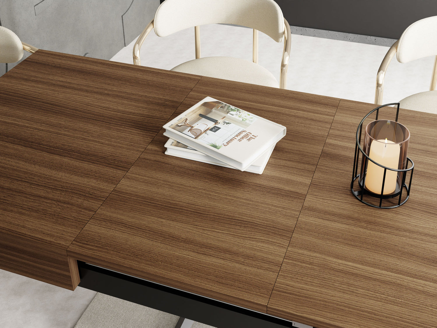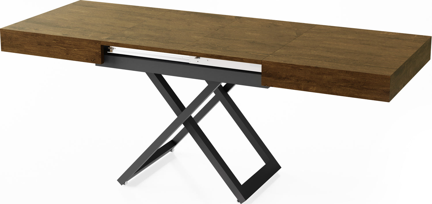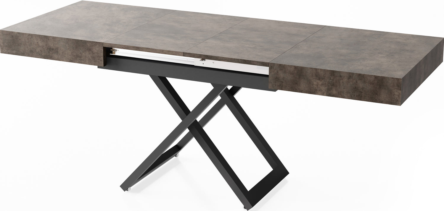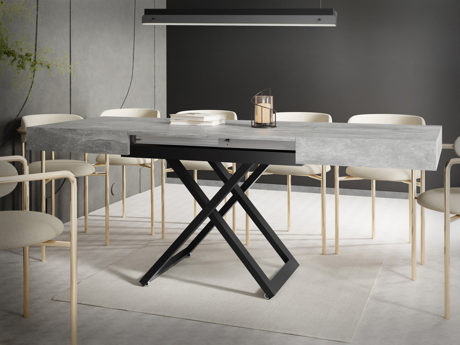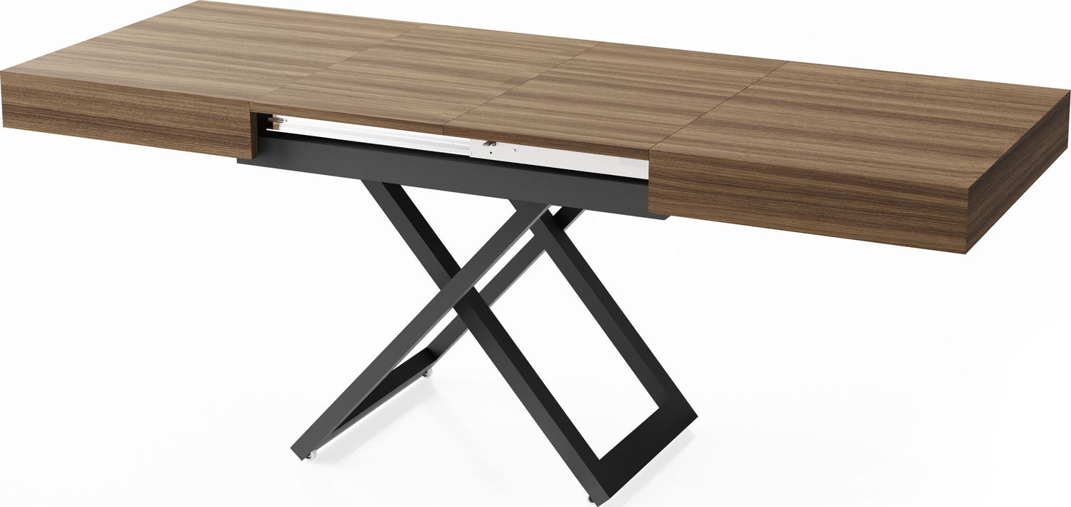 Płynna regulacja wysokości od 27 do 76 cm pozwala dostosować mebel do każdej sytuacji: rano jako kompaktowy stolik kawowy, wieczorem jako przestronny stół jadalniany dla nawet 8 osób. Blat można rozszerzyć z 120 do 200 cm dzięki dwóm wbudowanym wkładkom – idealne rozwiązanie na spotkania rodzinne i dla niezapowiedzianych gości.