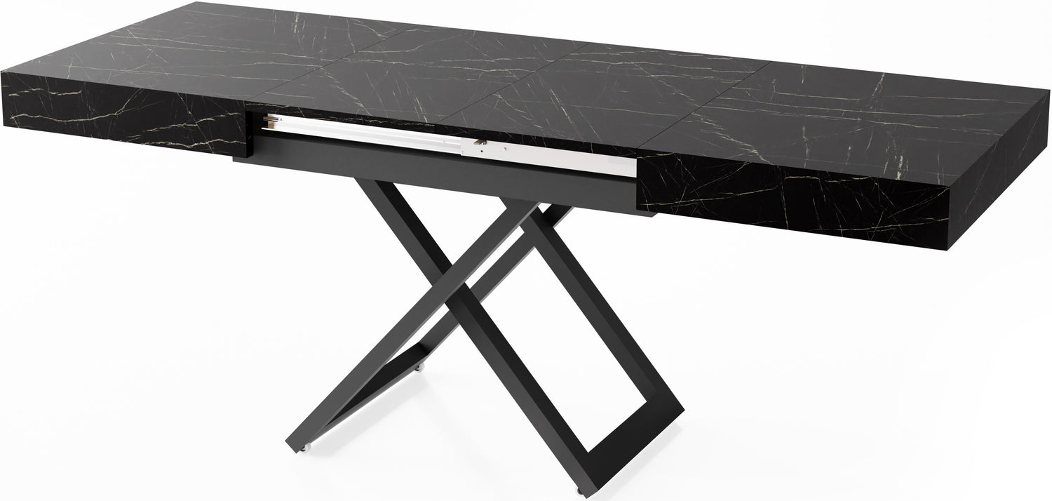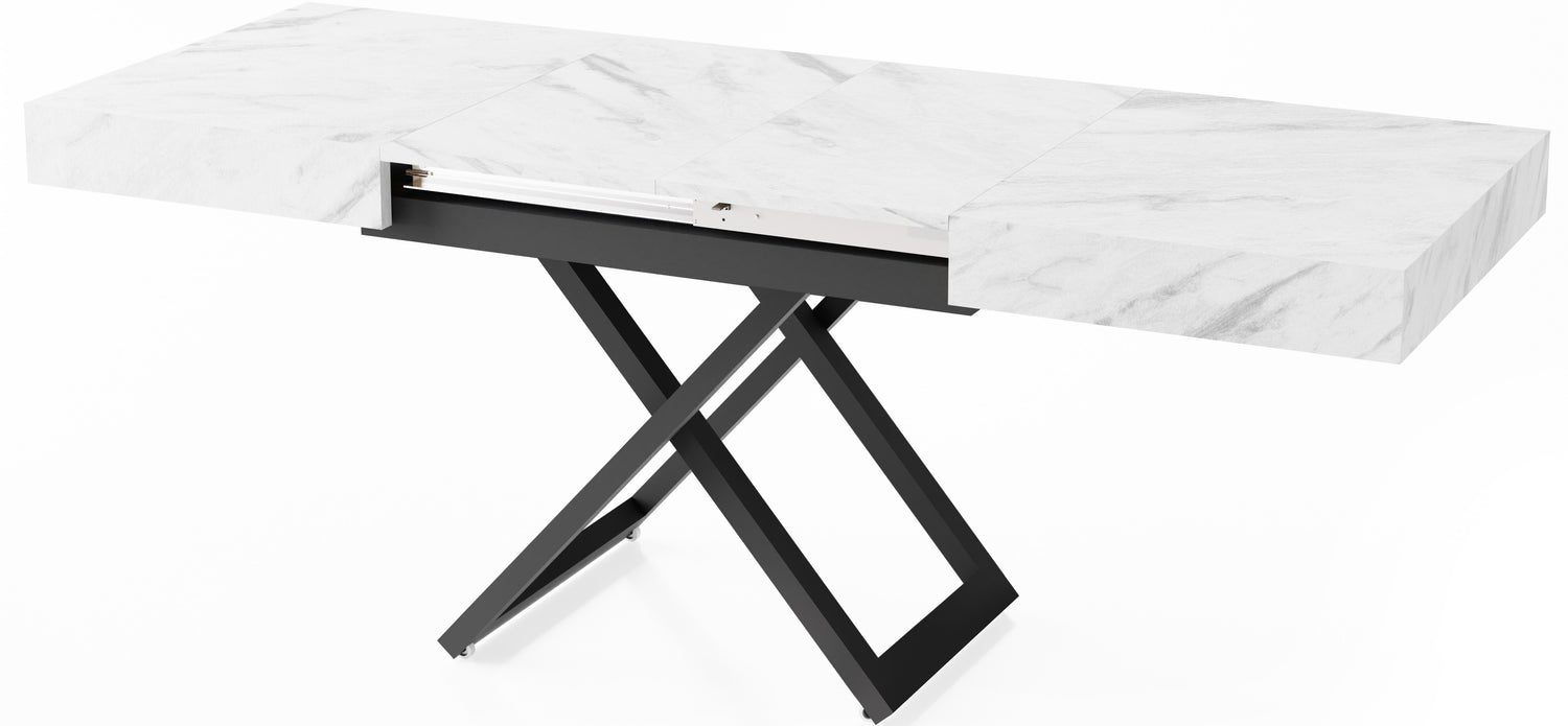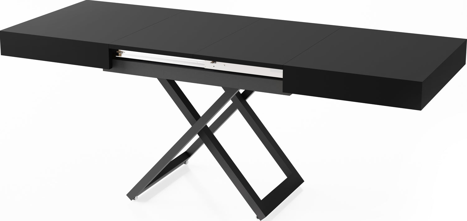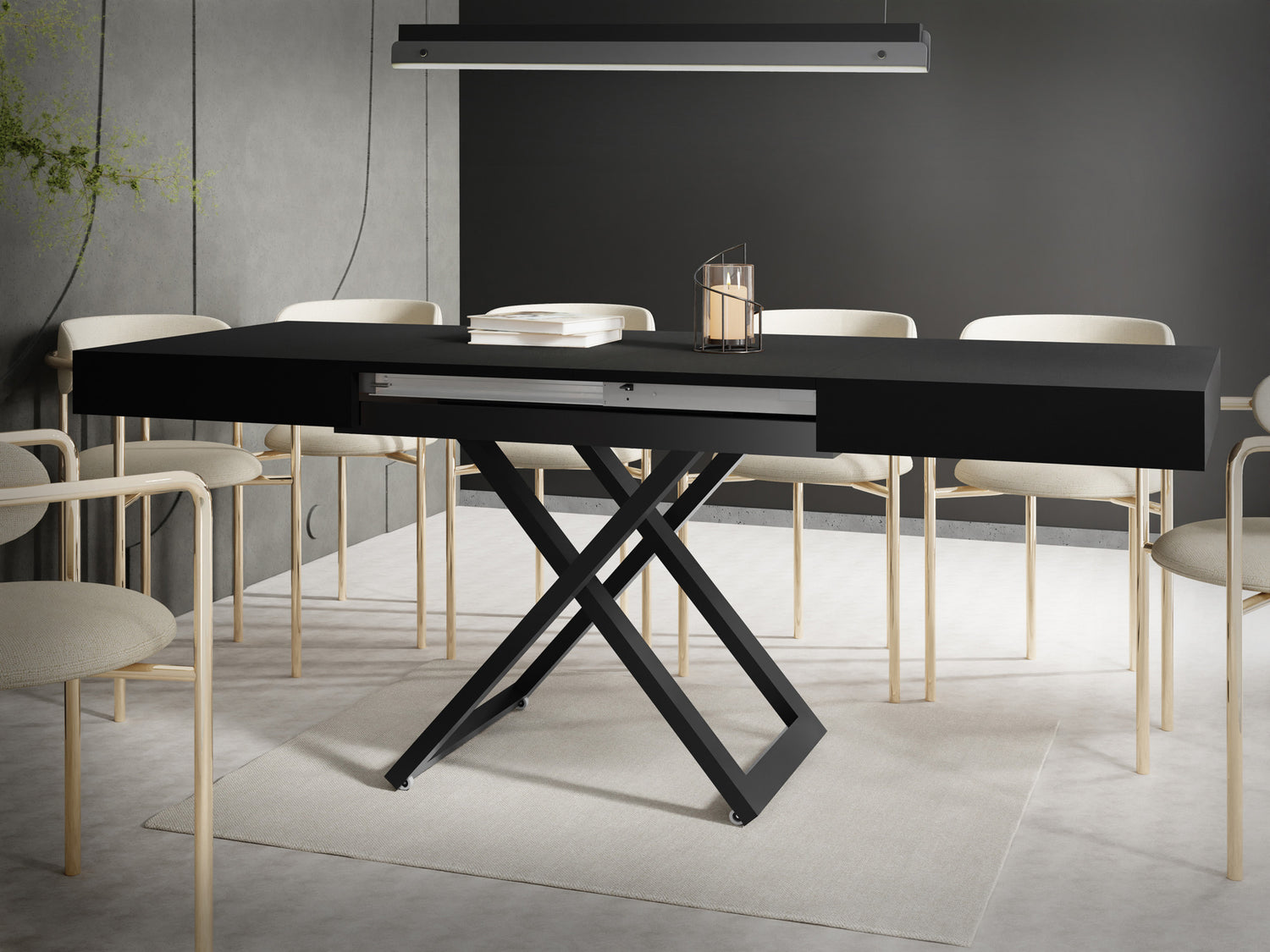 Płynna regulacja wysokości od 27 do 76 cm pozwala dostosować mebel do każdej sytuacji: rano jako kompaktowy stolik kawowy, wieczorem jako przestronny stół jadalniany dla nawet 8 osób. Blat można rozszerzyć z 120 do 200 cm dzięki dwóm wbudowanym wkładkom – idealne rozwiązanie na spotkania rodzinne i dla niezapowiedzianych gości.