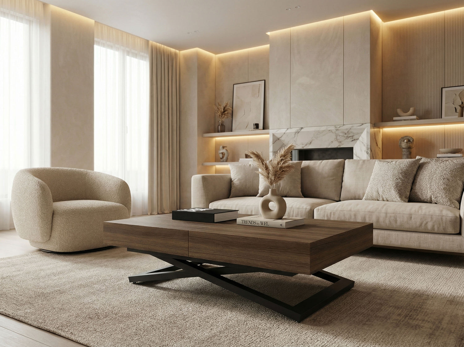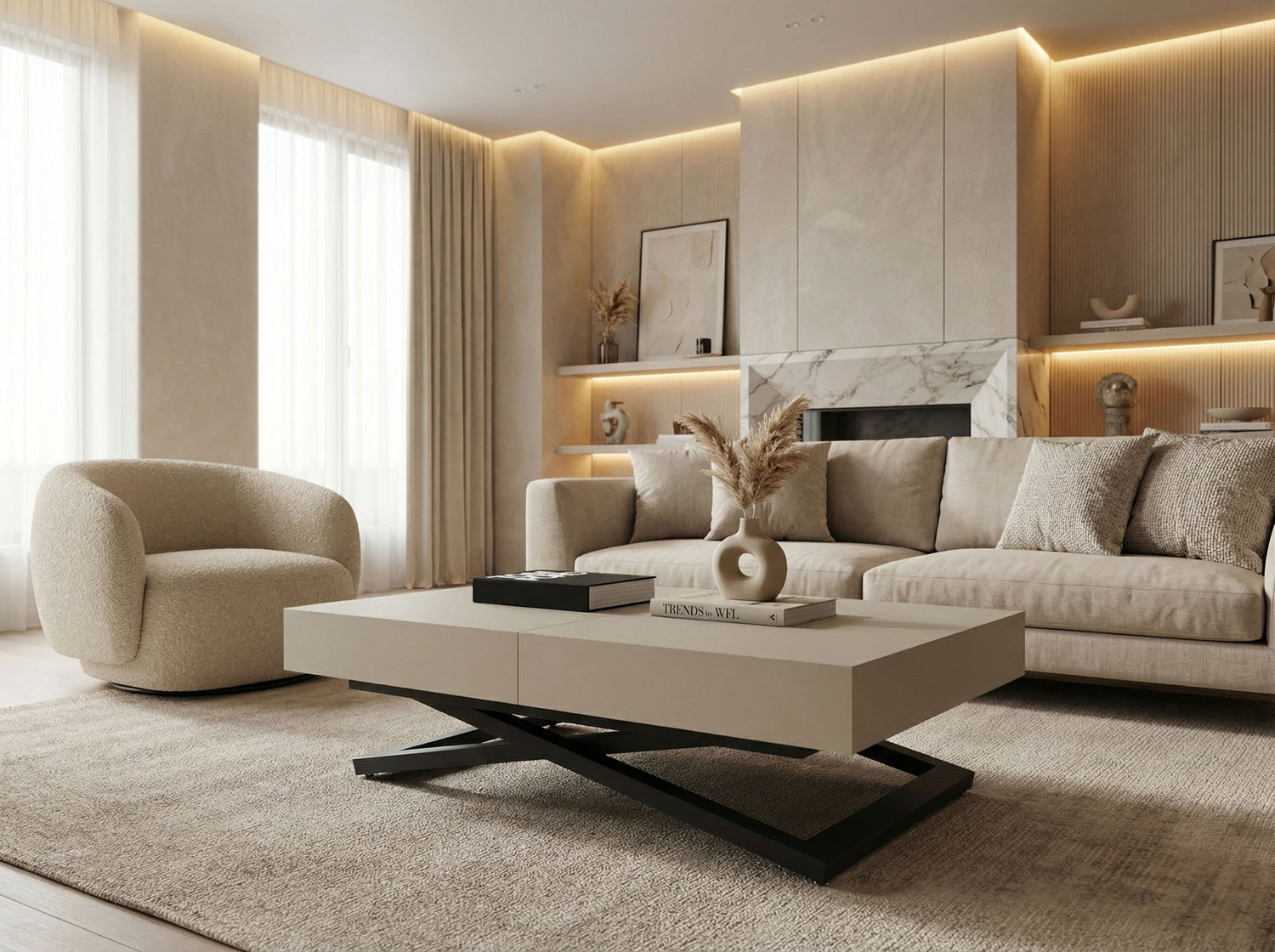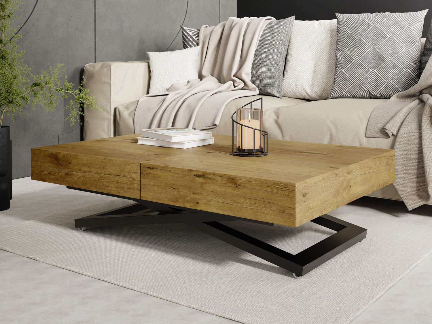 Zaawansowany system podnoszenia umożliwia płynną, stabilną regulację wysokości. Za pomocą kilku prostych ruchów zmienisz stolik kawowy w komfortowy stół jadalniany, zachowując pełną stabilność konstrukcji na każdej wysokości.