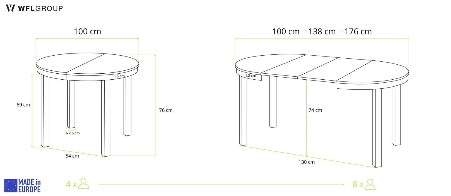 - Średnica blatu: 100 cm
