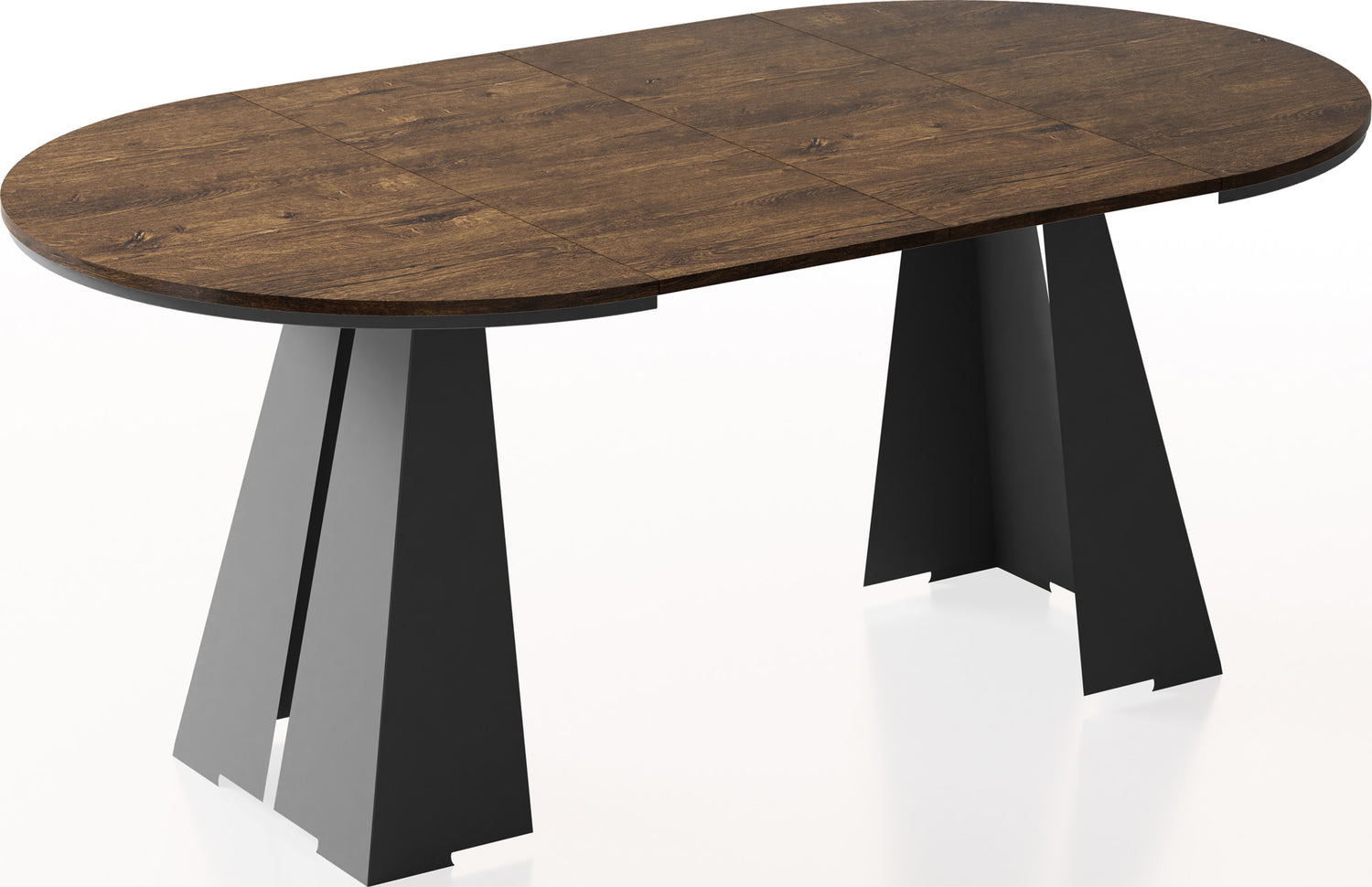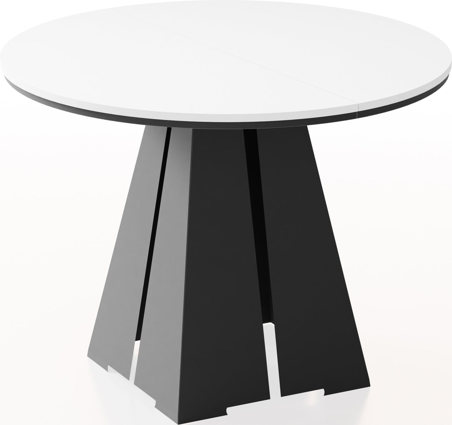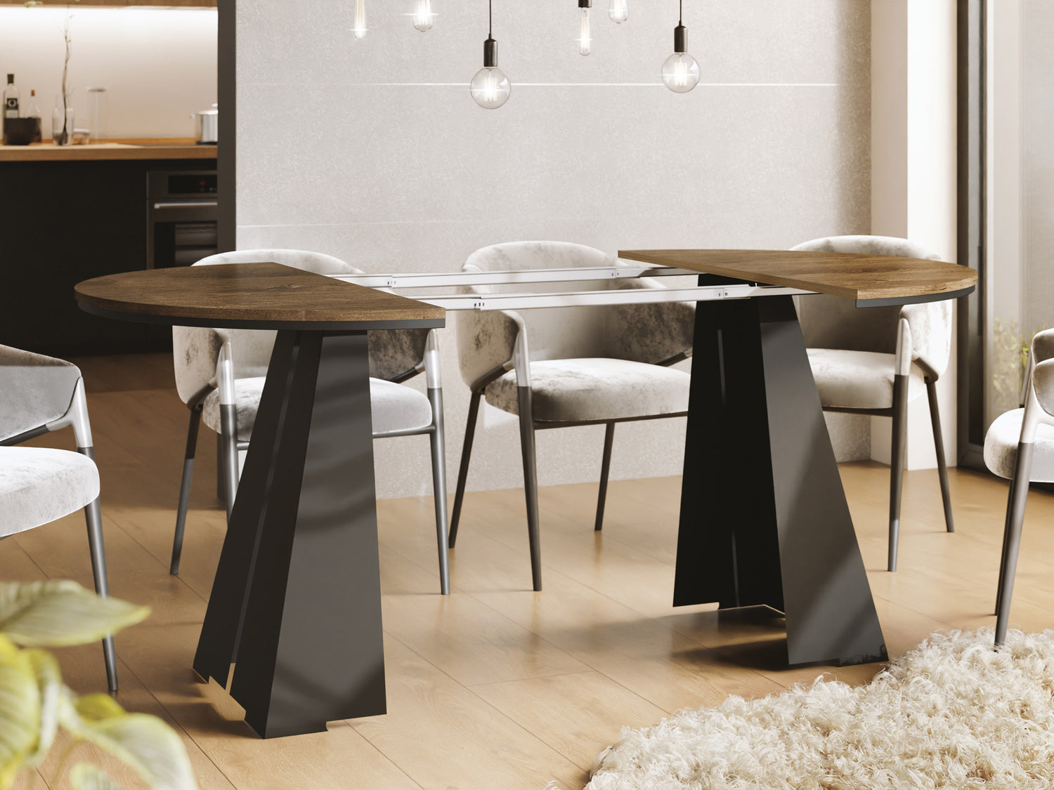 Stół jadalniany Kova łączy nowoczesny design z architektoniczną formą. Charakterystyczna podstawa w kształcie piramidy nadaje mu wyjątkowy, rzeźbiarski wygląd, a okrągły blat sprawia, że idealnie sprawdza się jako stylowe centrum jadalni lub salonu.