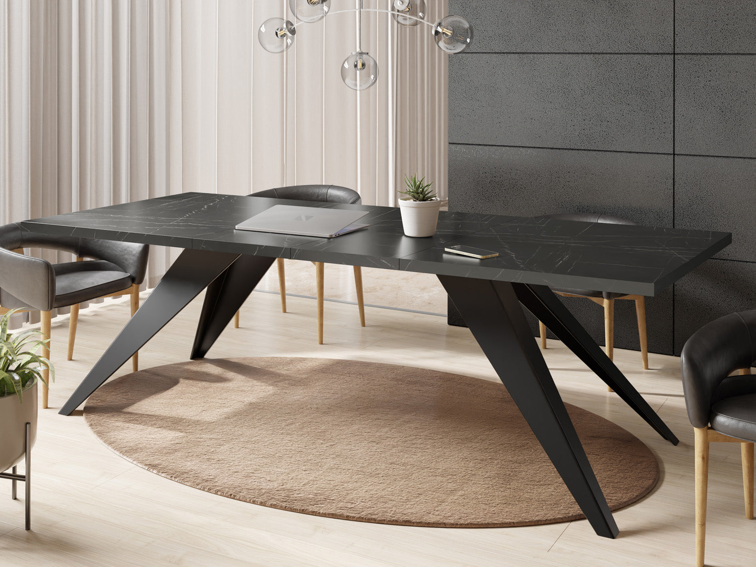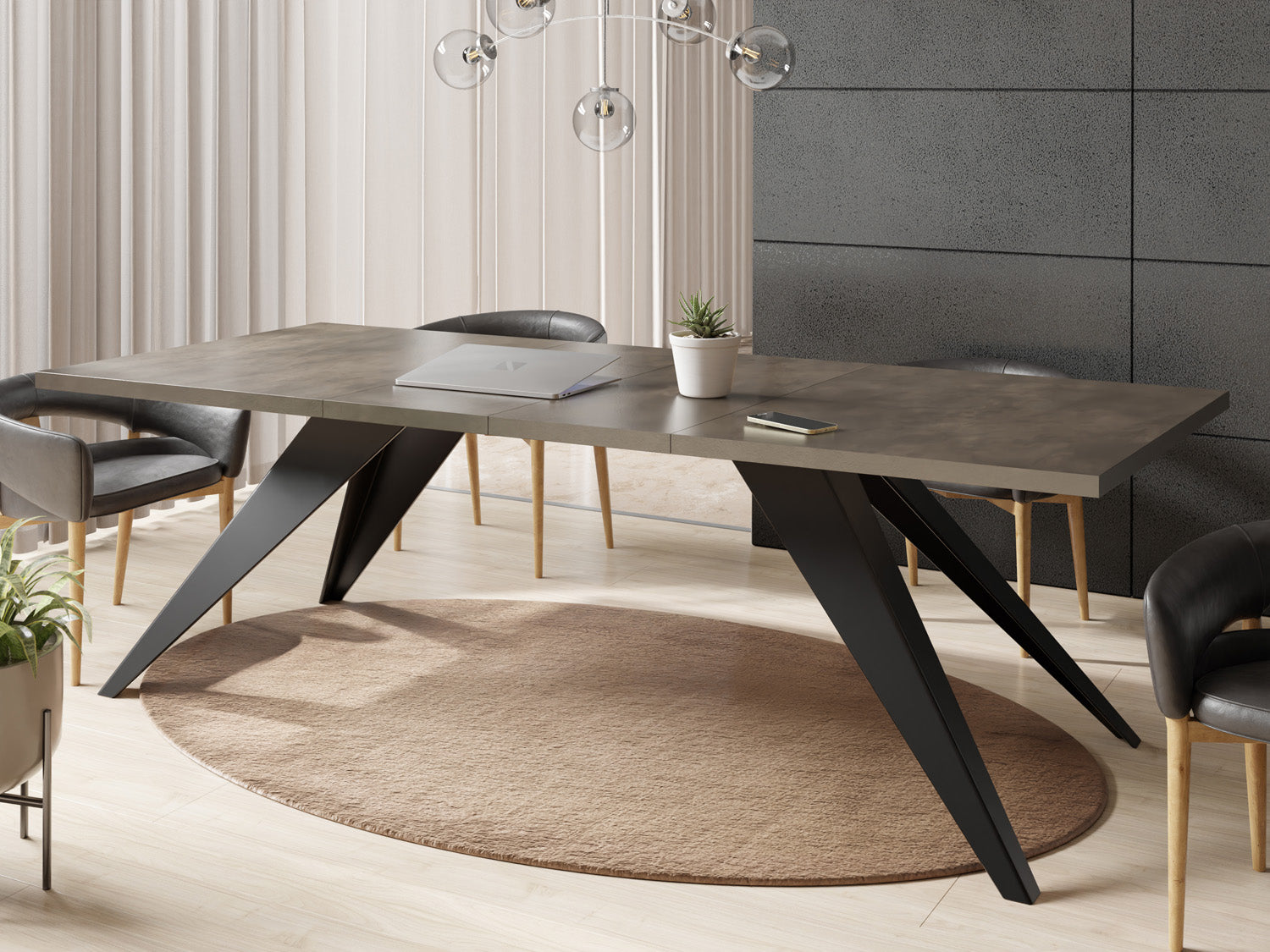 Proste linie i stabilny stelaż ze stali malowanej proszkowo nadają stołowi loftowy, industrialny wygląd. Dzięki funkcji rozkładania Vance łatwo dopasowuje się do liczby gości, oferując wygodną przestrzeń do wspólnych posiłków.