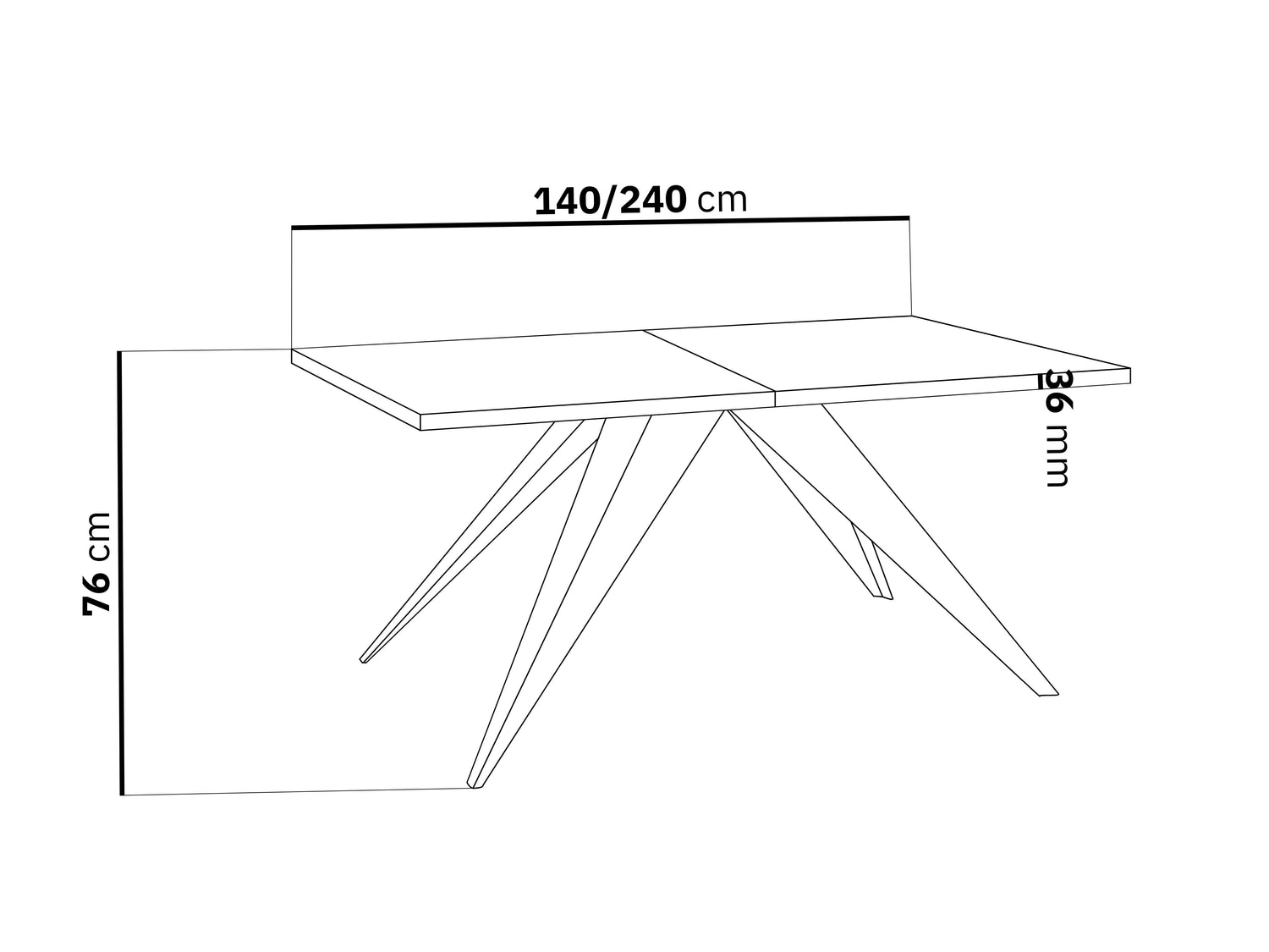 - 140 cm – blat 140 × 80 cm, wysokość 76 cm; po rozłożeniu: 240 cm