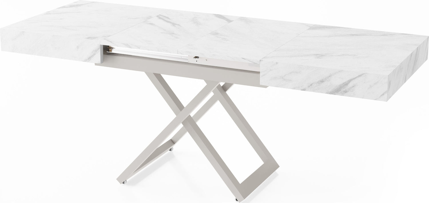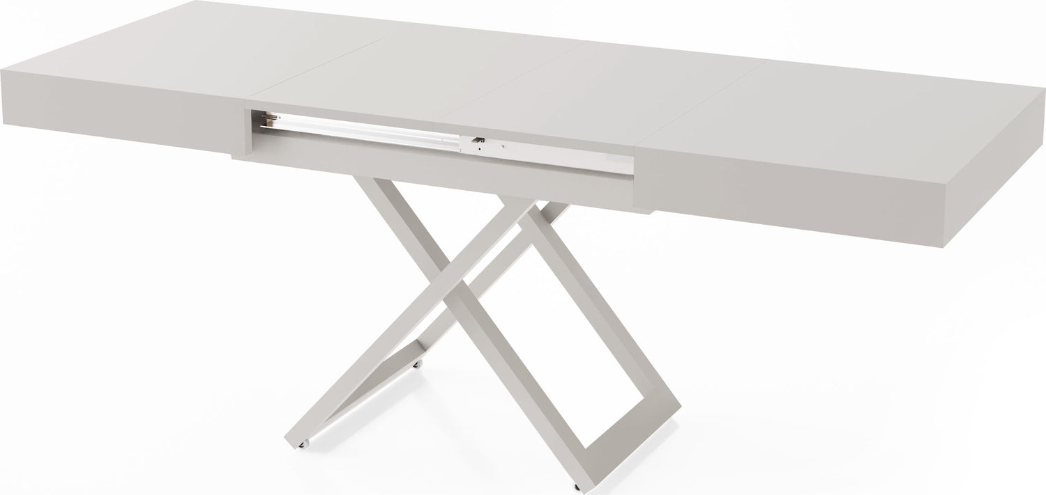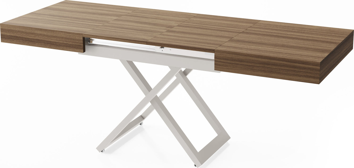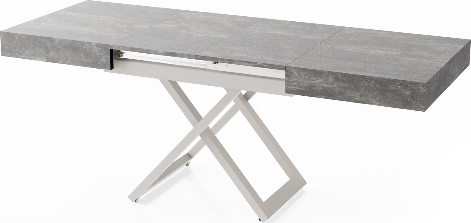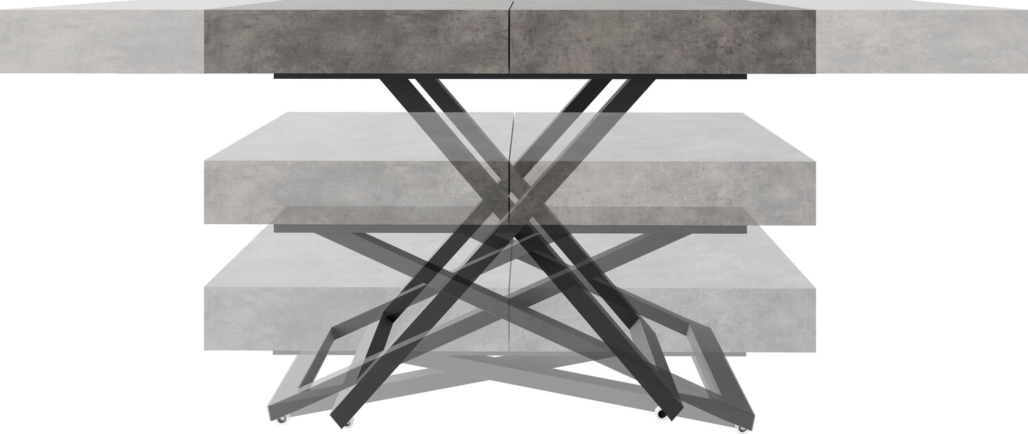 Szczególną cechą jest dopracowany system podnoszenia, który umożliwia płynną i stabilną regulację wysokości. Stół można przekształcić z wysokości stolika kawowego na wysokość stołu jadalnego za pomocą kilku prostych ruchów, oferując maksymalną stabilność w każdej pozycji.