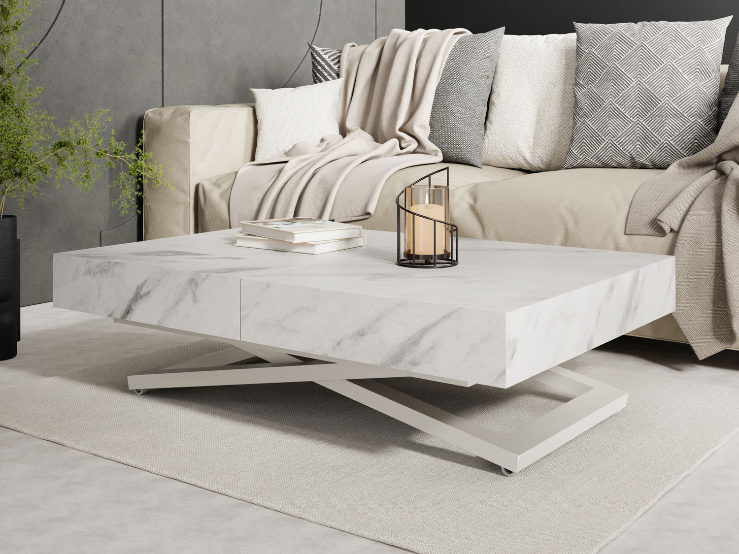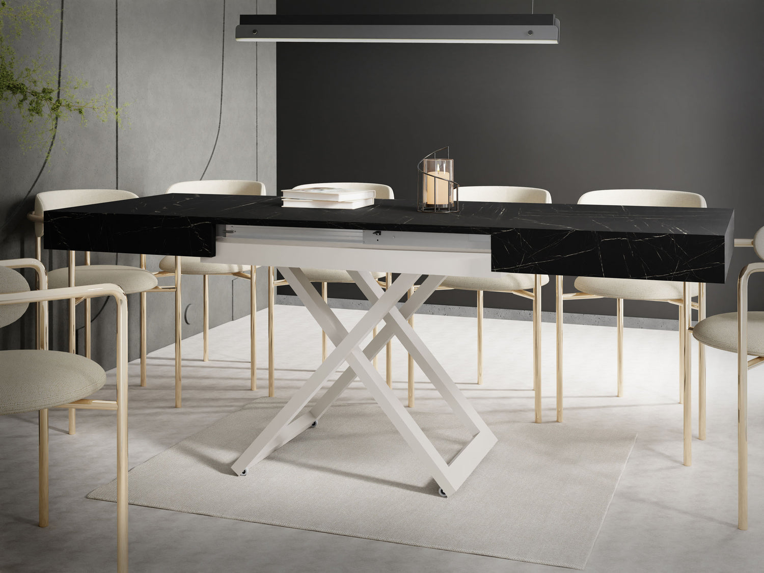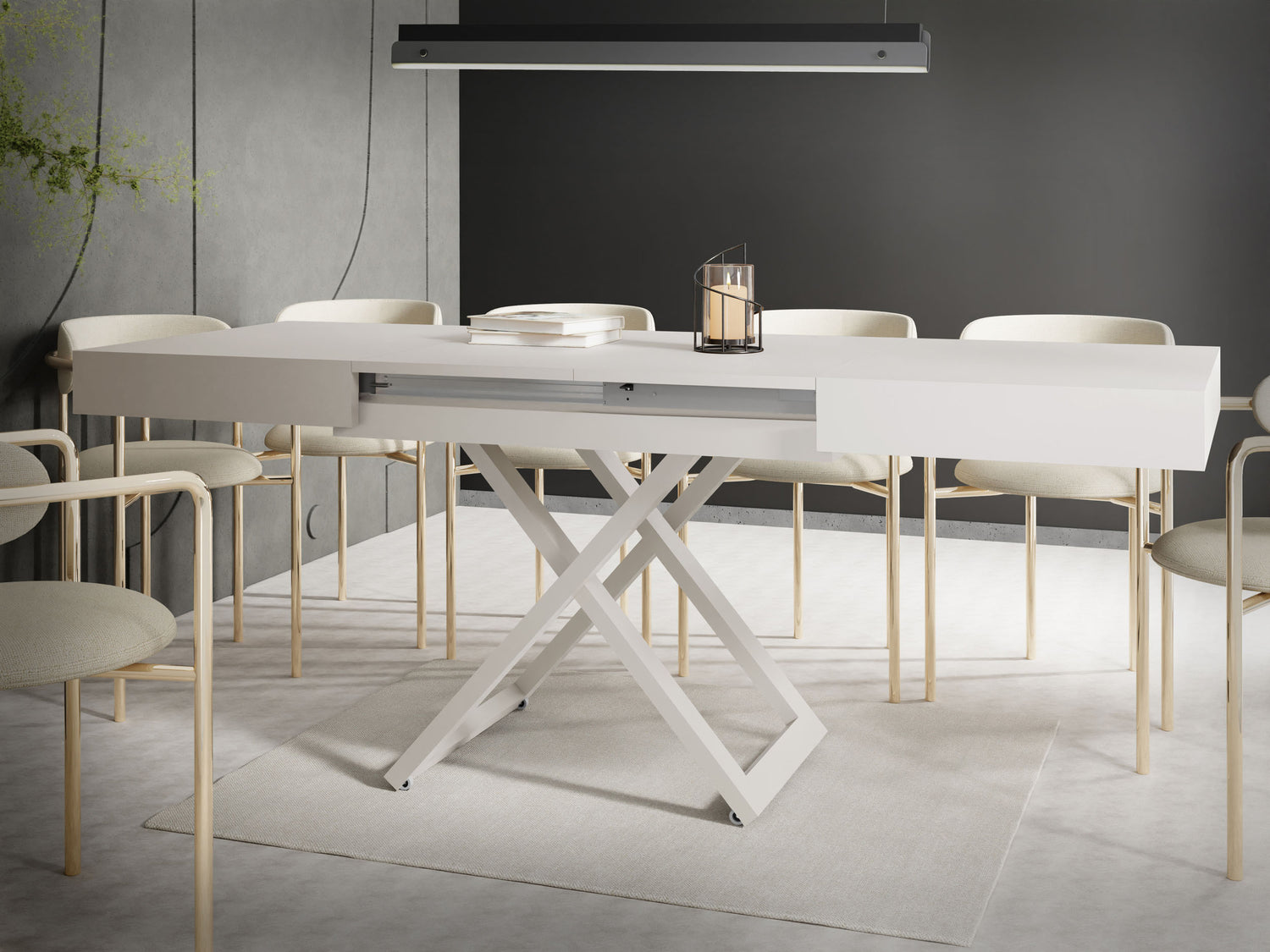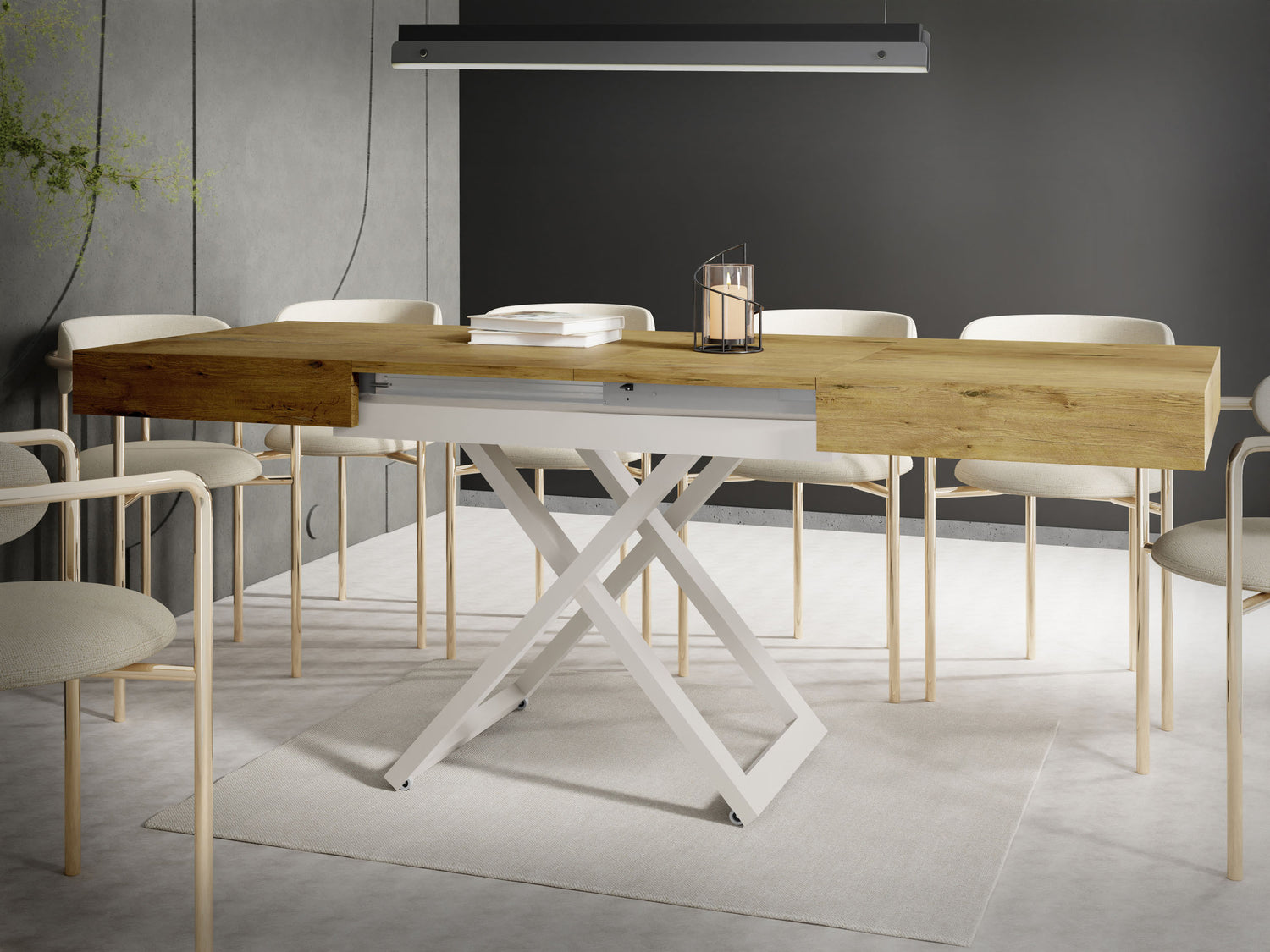 Szczególną cechą jest dopracowany system podnoszenia, który umożliwia płynną i stabilną regulację wysokości. Stół można przekształcić z wysokości stolika kawowego na wysokość stołu jadalnego za pomocą kilku prostych ruchów, oferując maksymalną stabilność w każdej pozycji.